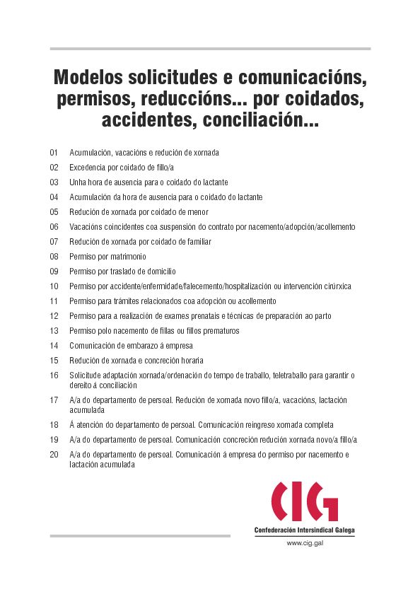 Modelos solicitudes e comunicacións, permisos, reduccións... por coidados, accidentes, conciliación...