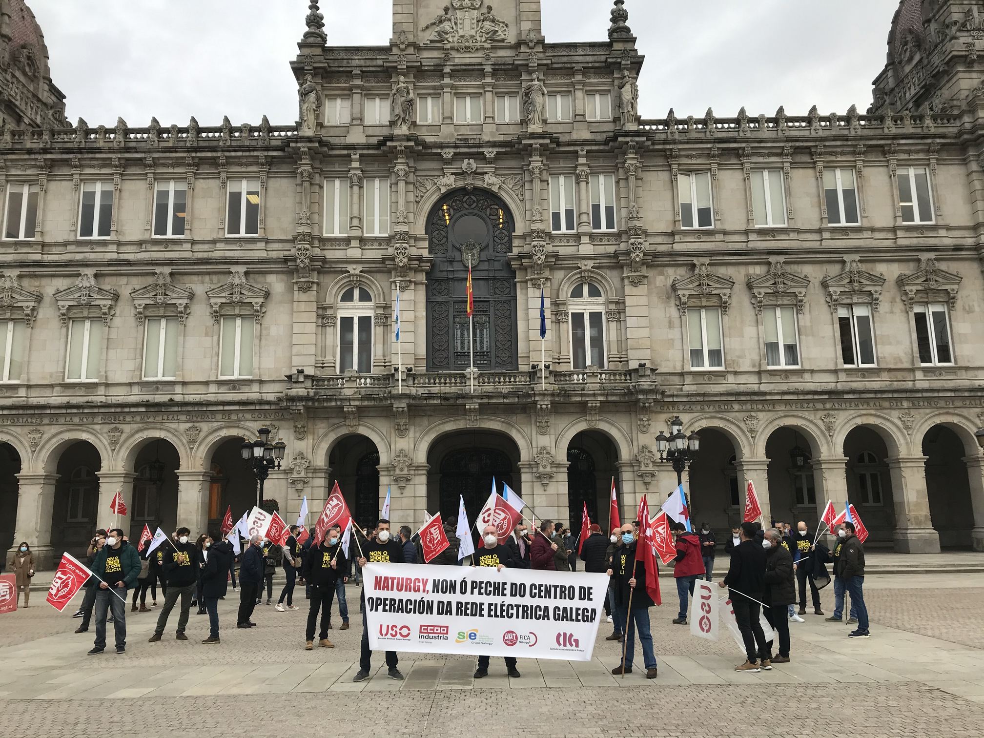 Os traballadores do COR de Naturgy mobilízanse no Concello da Coruña contra o peche das instalacións