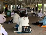 O persoal da UCI fai unha sentada ás portas do Clínico para “meditar” tras 12 semanas de folga