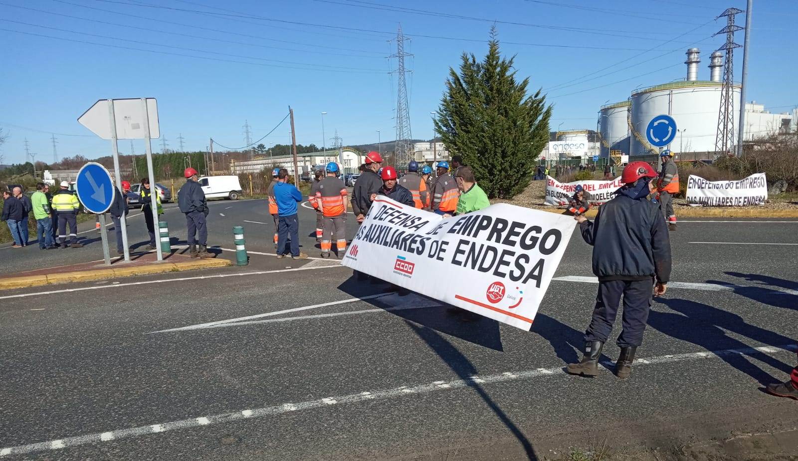 Traballadores/as da central de Endesa intensifican as accións de protesta para esixir a constitución xa da mesa das Pontes