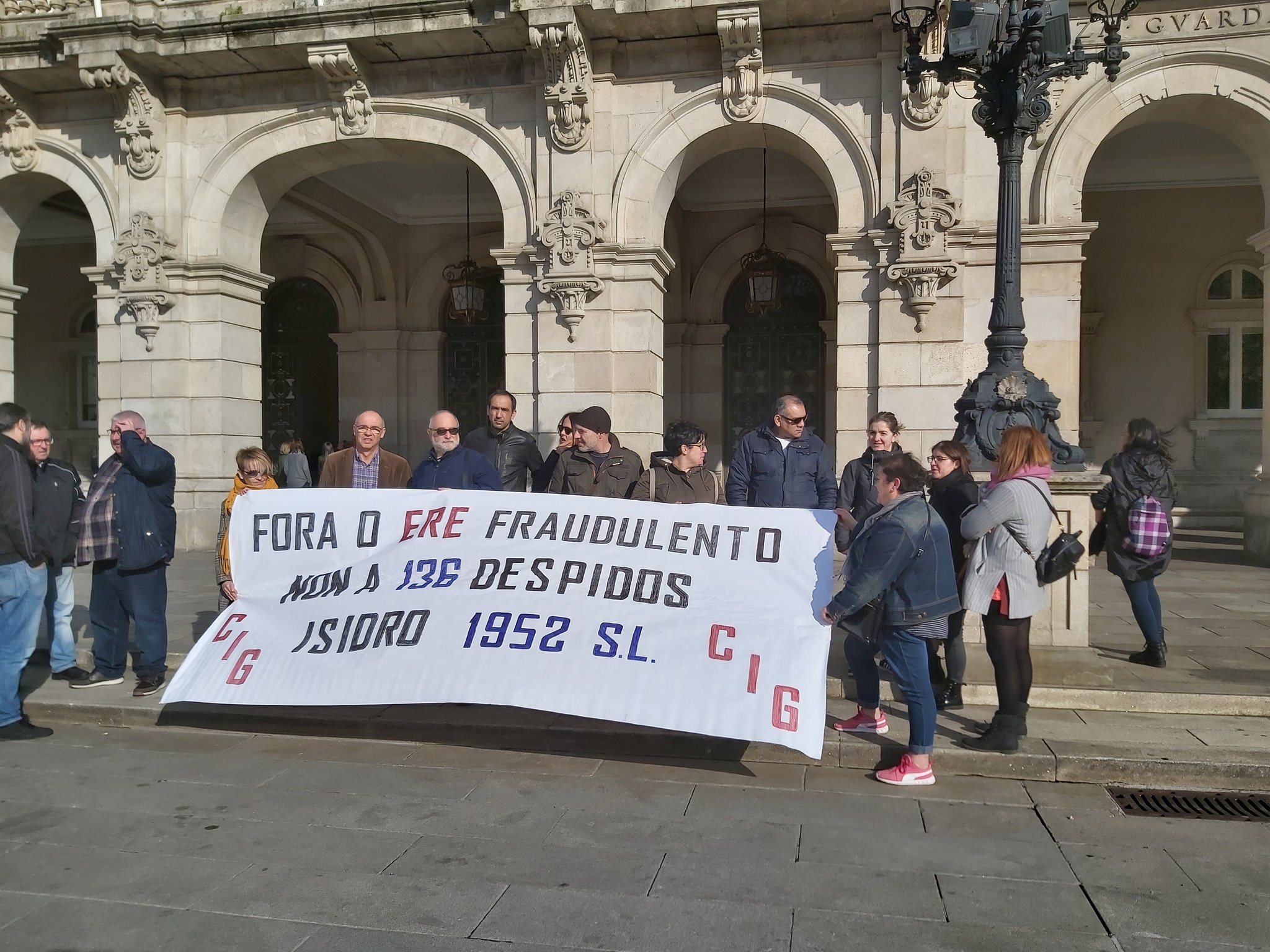 Persoal de Isidro 1952 concéntranse en María Pita coincidindo coa votación da moción de apoio á súa loita