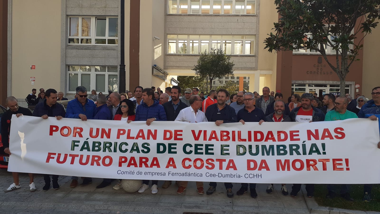 O persoal de Ferroatlántica inicia o calendario de mobilizacións semanais diante do Concello de Cee