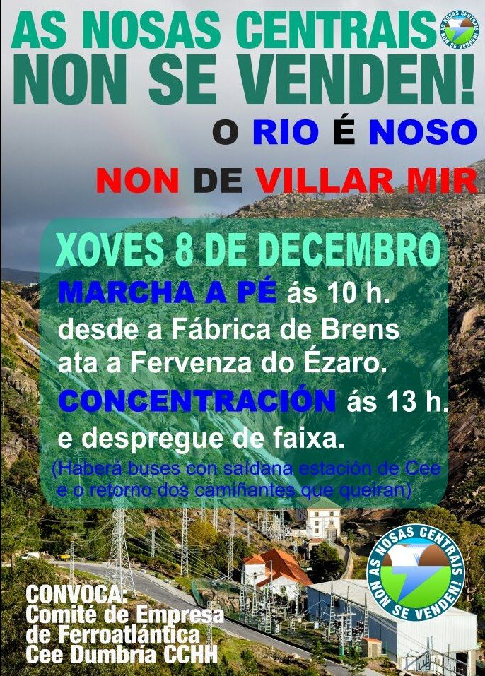Marcha a pé de traballadores/as de Ferroatlántica contra a pretensión de Villar Mir de vender a empresa