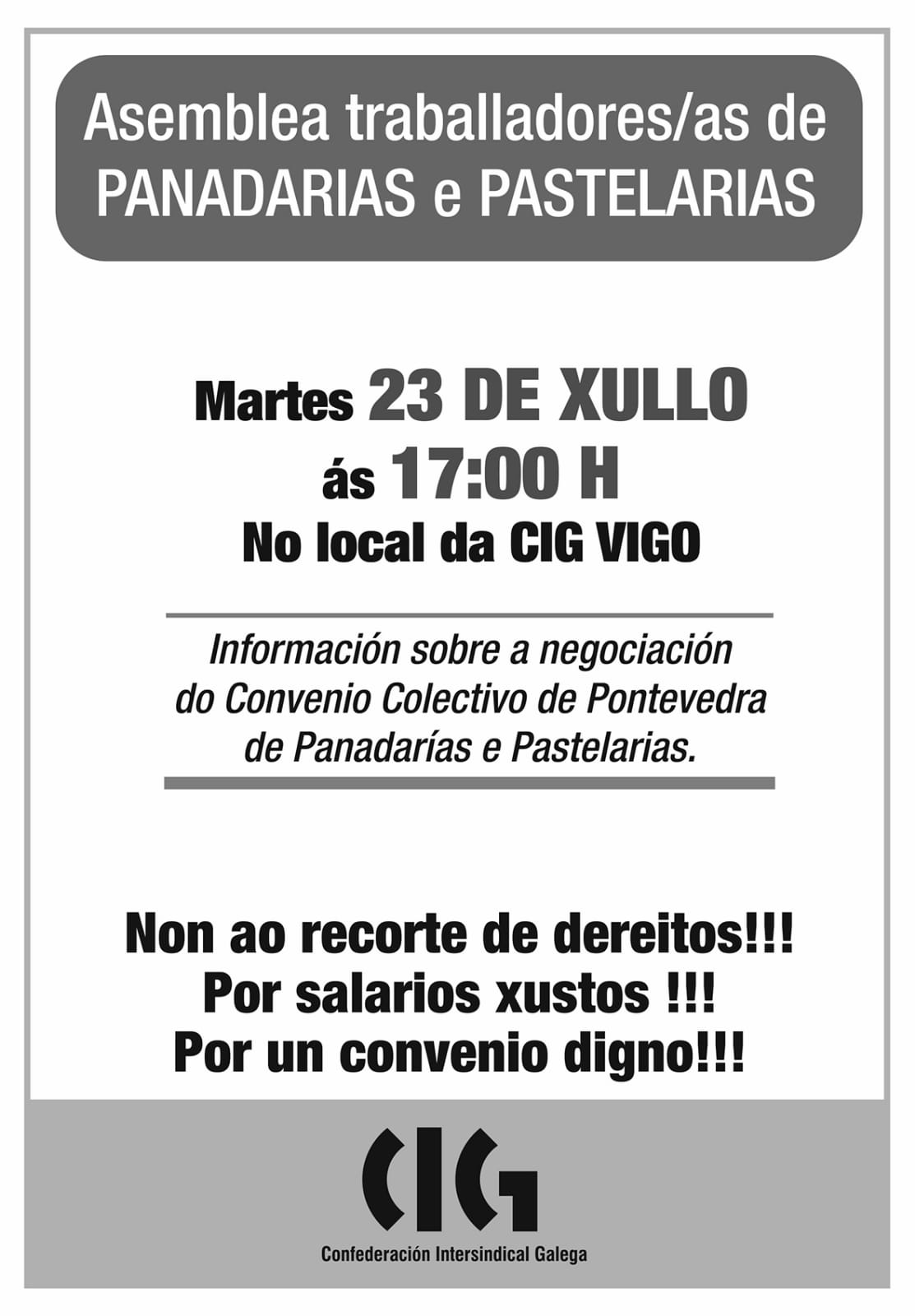 A CIG convoca unha asemblea para informar do convenio de Panadarías e Pastelarías de Pontevedra
