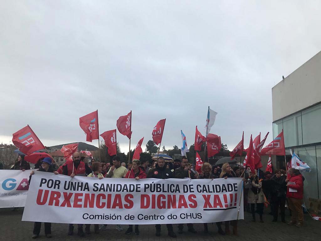 O persoal de Urxencias do Clínico, en folga indefinida, traslada as súas demandas ás portas do Sergas