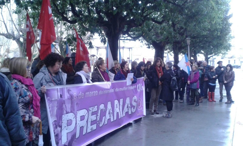 “As galegas ou ben somos traballadoras por conta propia que sobrevivimos en actividades e negocios que non nos dan para vivir, pero que mantemos abertos ante a falta de alternativas. Ou somos traballadoras asalariadas, mais precarias, que a pesar de traballarmos cada día, facémolo en condicións de precariedade, e non conseguimos deixar de ser pobres”, alertaba a Secretaria das Mulleres da CIG, Margarida Corral, durante unha das sete concentracións convocadas pola central sindical, con motivo do 8 de Marzo.