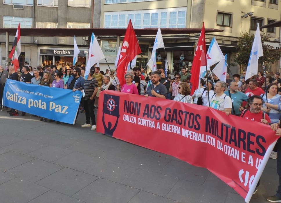 Nas protestas tamén se rexeitou o acordo para incrementar aínda máis os gastos militares acadado na cimeira da OTAN que afonda “nun camiño de militarización da economía e da sociedade que de nada serve para mellorar as nosas vidas, nin para gañar en seguridade”. Fronte a isto, a plataforma demandou unha aposta clara pola diplomacia e o respecto ao dereito internacional “que garanta a paz en base ao dereito dos pobos ao exercicio da súa soberanía sen inxerencias”.