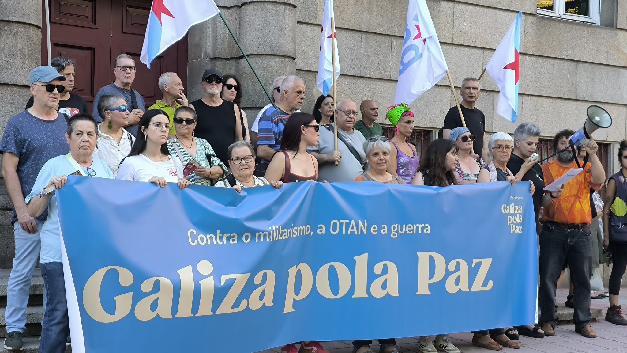 Da Plataforma Galiza pola Paz exiximos a paralización de todo incremento do gasto militar, a denegación do espazo aéreo e das bases militares ao servizo da OTAN para calquera tipo de colaboración coa agresión contra Irán ou contra calquera outro Estado soberano e a inmediata retirada da fragata Méndez Núñez, con base no arsenal militar de Ferrol e que neste momento participa nun grupo de combate con buques británicos e norteamericanos na zona.