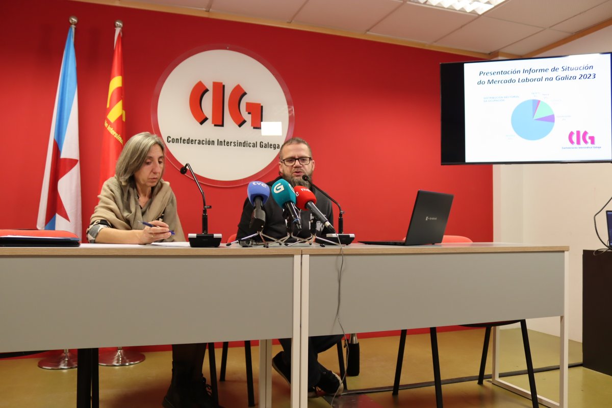 A CIG presentou esta mañá o Informe da “Situación do Mercado Laboral en Galiza. Ano 2023”, no que se confirma o grave incremento da precariedade no último ano. Se en 2021 a equivalencia entre as persoas asalariadas que máis cobran e as que menos era de 1-84, en 2023 foi de 1-100. Isto é, son xa necesarias 100 persoas asalariadas das que menos cobran para ingresar o mesmo que unha das que máis cobran.