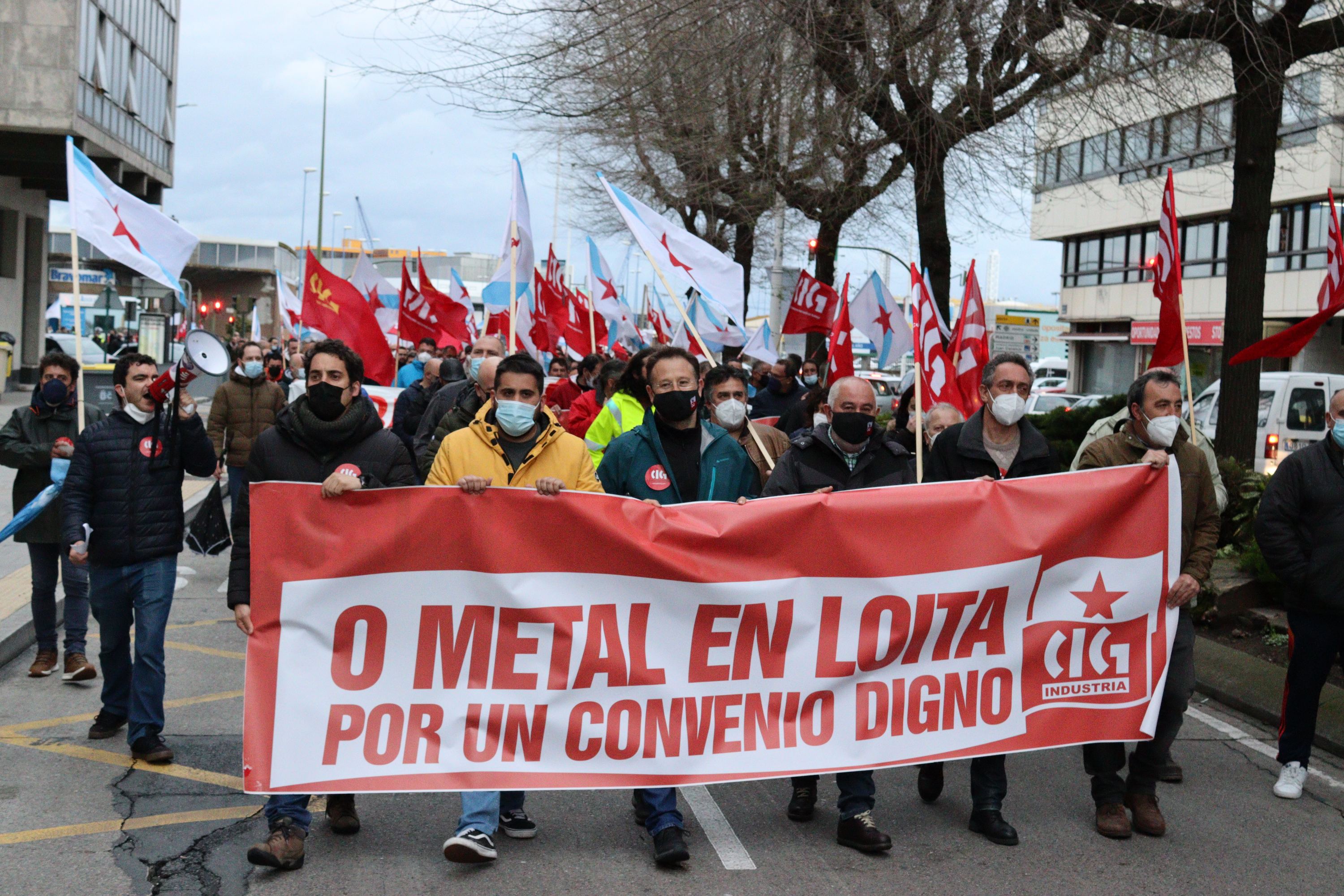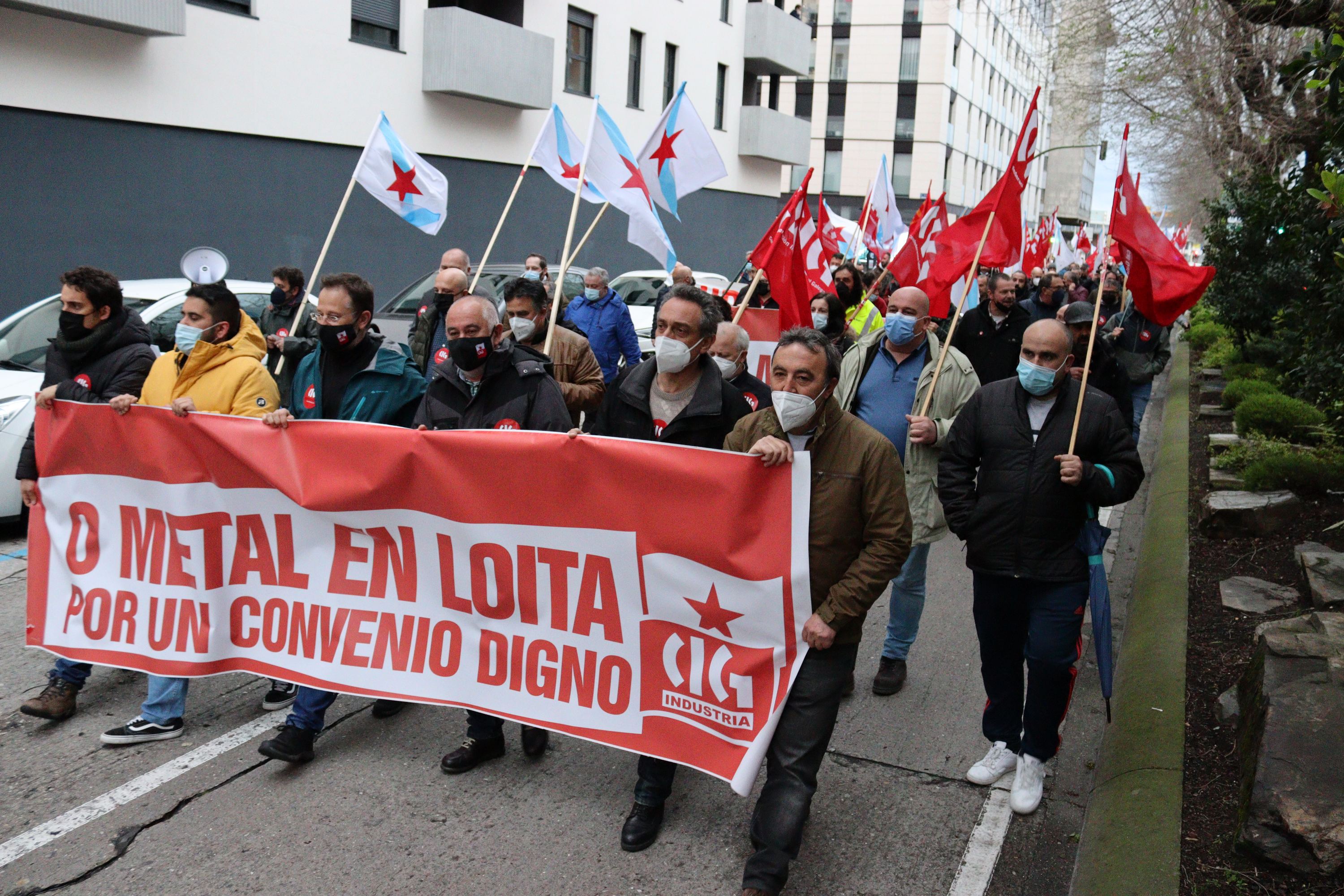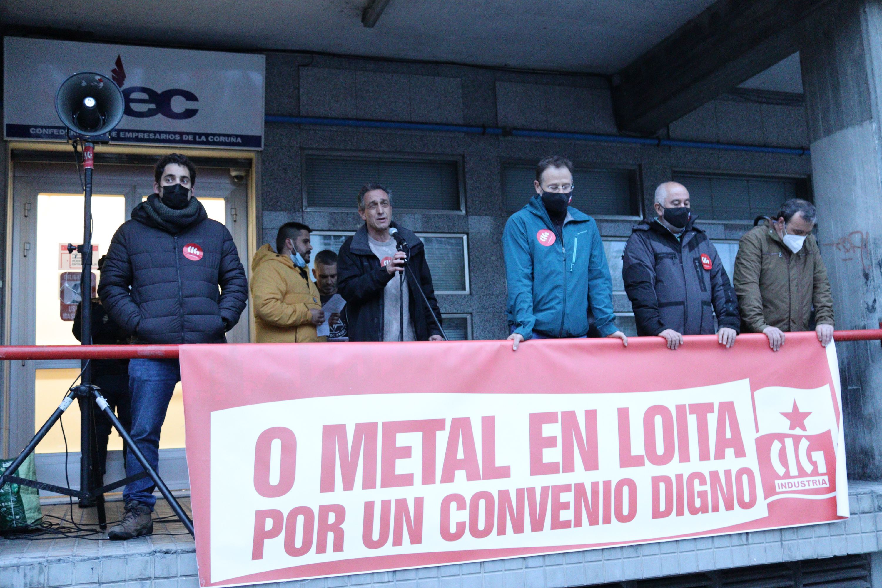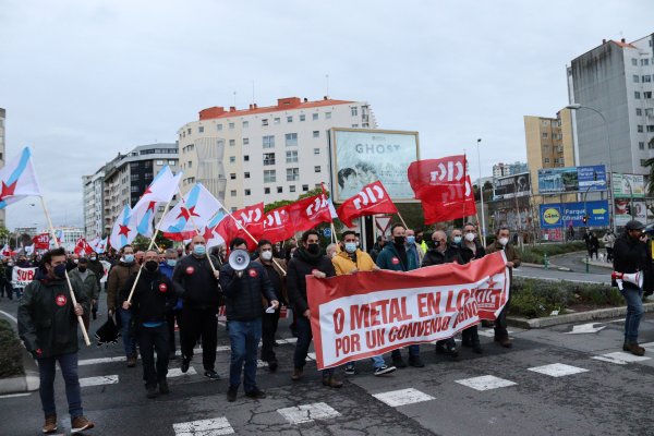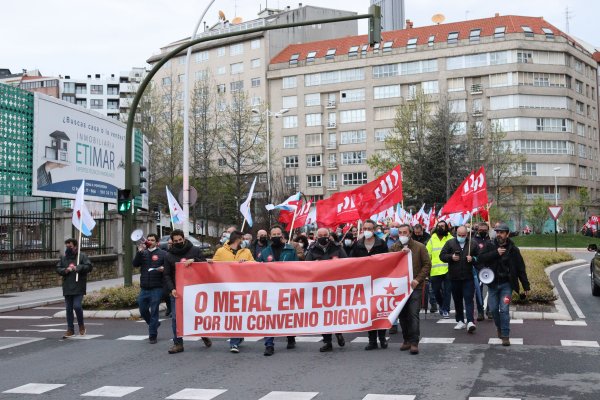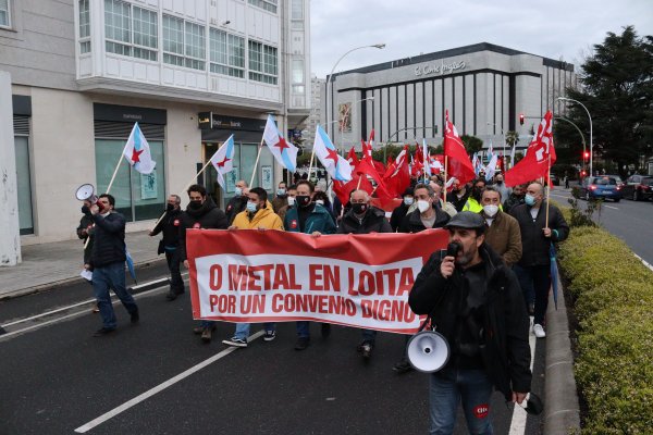 Traballadores e traballadoras do sector do metal manifestáronse esta tarde na cidade da Coruña para esixir un convenio provincial digno e rexeitar as pretensións da patronal de recortar dereitos salariais e sociais consolidados. A mobilización, convocada pola CIG-Industria e con carácter provincial, saíu pasadas as 20 horas da Casa do Mar e rematou diante da sede da patronal coruñesa en Monelos, onde se avanzou a convocatoria inminente de folga no sector.
