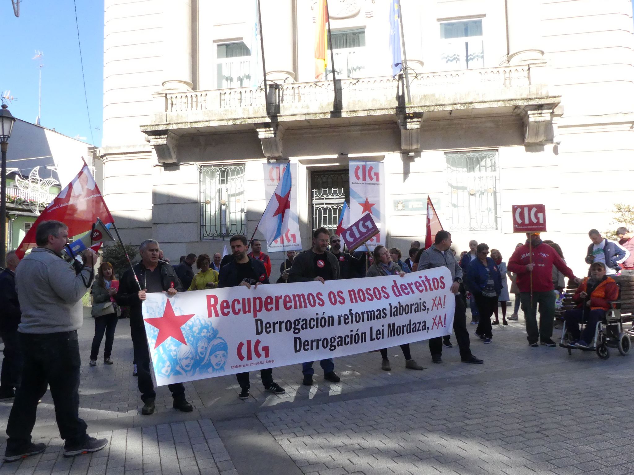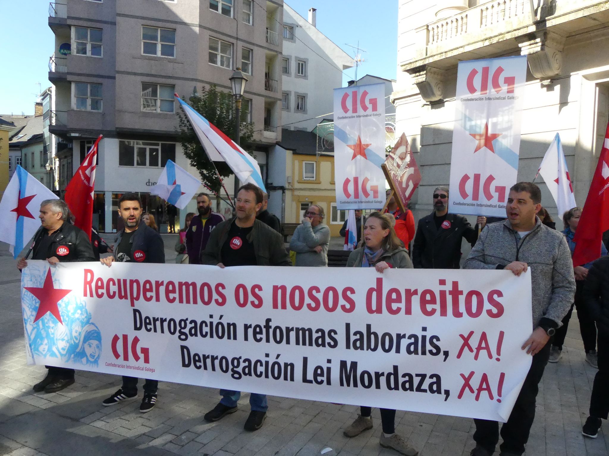 A CIG mobilizouse este martes en todas comarcas para demandar un calendario inmediato de actuacións que permita recuperar os dereitos perdidos nos últimos anos baixo o pretexto da crise. A central sindical advirte que, fronte ao discurso da presunta recuperación económica e os 'postureos' dos gobernos español e galego, atopámonos diante dunha situación de emerxencia nacional e social que require seguirmos na mobilización como único camiño para combater a precariedade, a pobreza e a emigración.