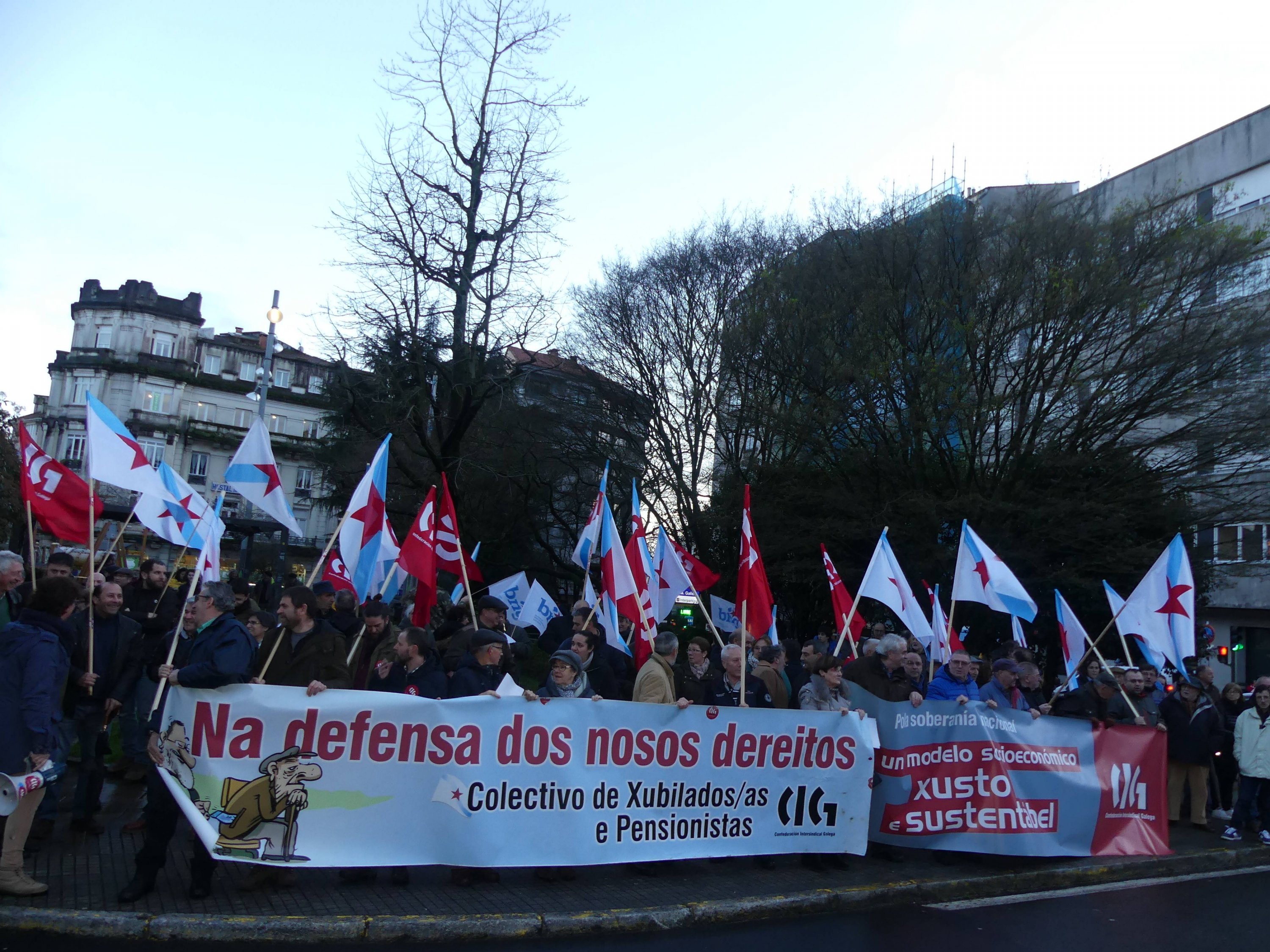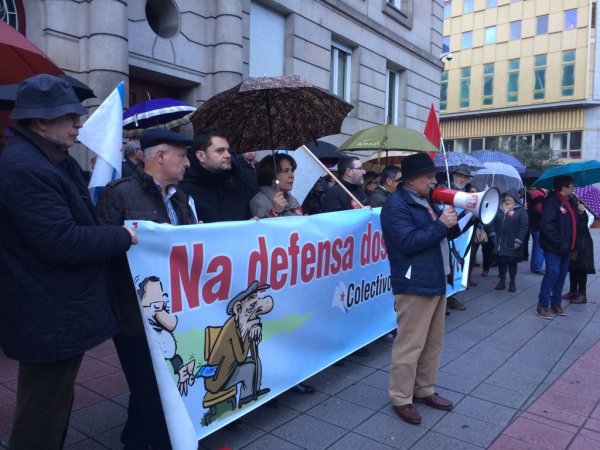 Ademais demandaron unha revalorización das pensións digna, en función do IPC e “non ese miserábel 0.25% que o goberno de Rajoy ofrece” e defenderon “un sistema público de pensións que permita unha vida digna ás persoas xubiladas de hoxe e ás que veñen detrás, as nosas fillas e os nosos netos”; a eliminación dos topes máximos de cotización á Seguridade Social; a xubilación ordinaria aos 65 anos e unha pensión mínima igual ao Salario Mínimo Interprofesional e a xubilación voluntaria ao cumprirse 35 anos de cotización.