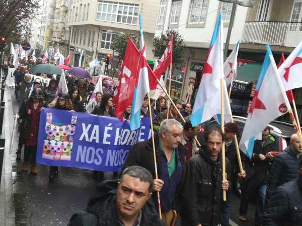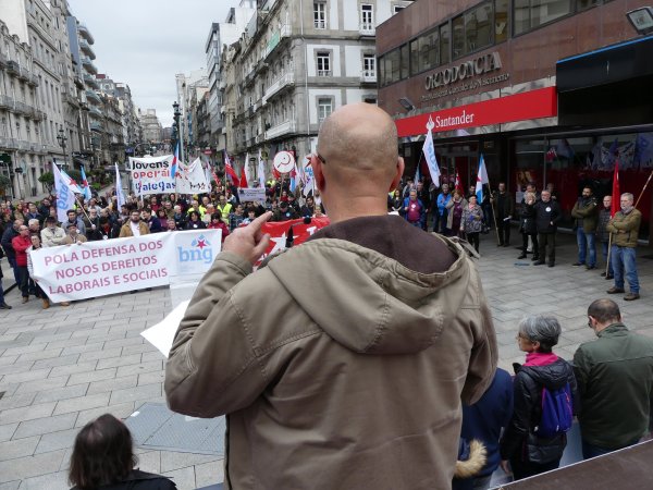 E insistiu no feito de que as solucións non virán da man dun poder político ou dunhas forzas políticas que defenden unha estrutura do Estado español que nega a súa realidade plurinacional, ou que, incluso sendo teoricamente de esquerda, "contribúen coa súa práctica á continuidade de medidas que saquean e rouban ás maiorías sociais e aos proceso de concentración e acumulación de riqueza en menos mans e en territorios lonxe da Galiza".