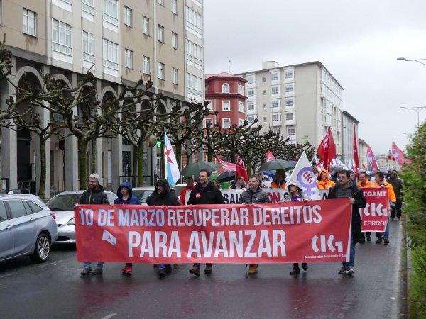A CIG mobilizouse este 10 de Marzo, Día da Clase Obreira Galega, nas sete cidades do país e mais Vilagarcía facendo un chamado as traballadoras e os traballadores a organizarse e a mobilizarse, porque só a través da loita poderemos forzar os cambios que nos permitan recuperar os dereitos para poder avanzar.