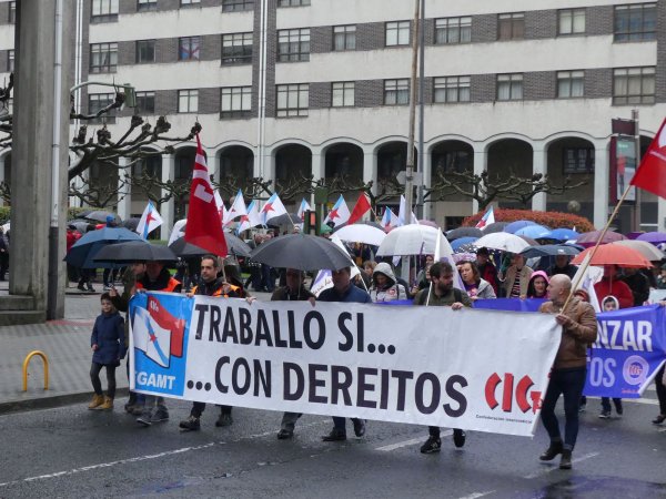 A CIG comezou as mobilizacións deste Día da Clase Obreira Galega coa tradicional ofrenda floral o pé do monumento que en Ferrol lembra a Amador Rei e Daniel Niebla, os dous traballadores de Bazán asasinados en 1972 pola policía franquista durante as mobilizacións do persoal dos estaleiros en demanda dun convenio colectivo. Con esta loita na retina, mais tamén coa histórica folga e as masivas mobilizacións que este 8 de Marzo rebordaron Galiza, o secretario xeral da CIG, Paulo Carril, chamou a non quedarse de brazos cruzados ante o medre da precariedade, do empobrecemento, o incremento das desigualdades de xénero, o desmantelamento industrial, o peche de empresas ou a sangría da emigración que azoutan Galiza.