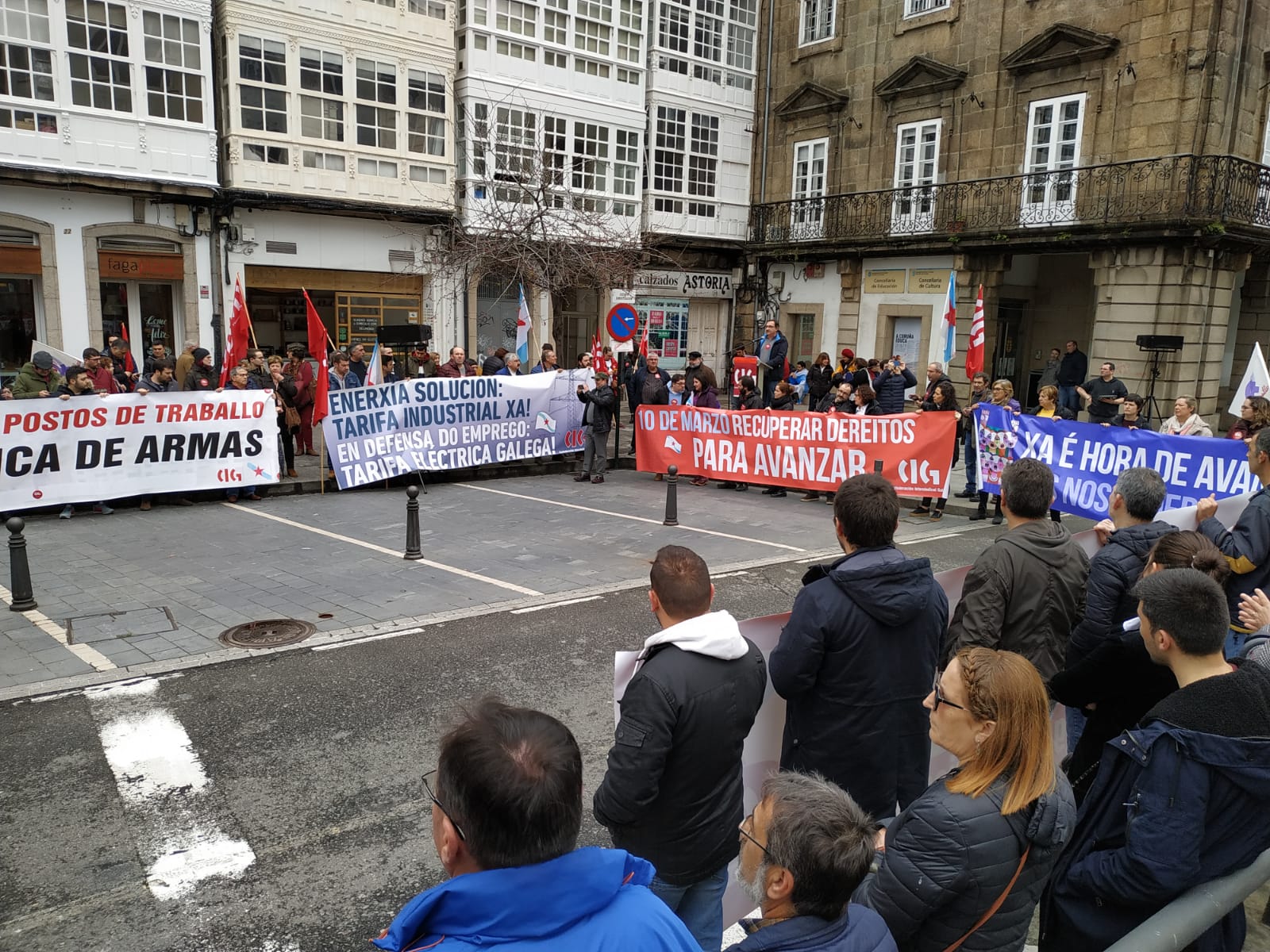 Carril puxo as casos de Alcoa, Ferroatlántica ou Poligal como exemplo do proceso de crise e desertización industrial en Galiza e valorizou a loita dos traballadores e traballadoras de ambulancias (que levan tres semanas en folga polo seu convenio), do persoal da sanidade (en revolta continúa contra os recortes e o deterioro deste servizo público esencial) ou a dos xubilados e xubiladas de Endesa contra a decisión da multinacional Enel de recortar os seus dereitos adquiridos.