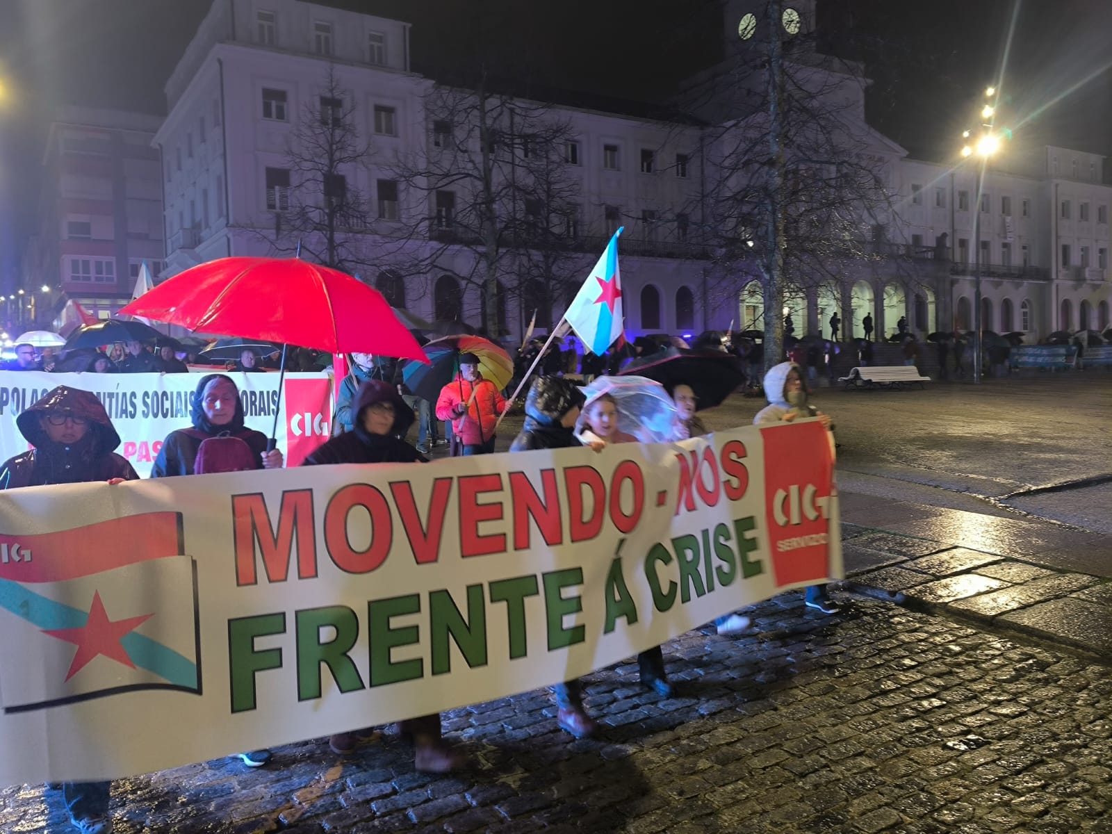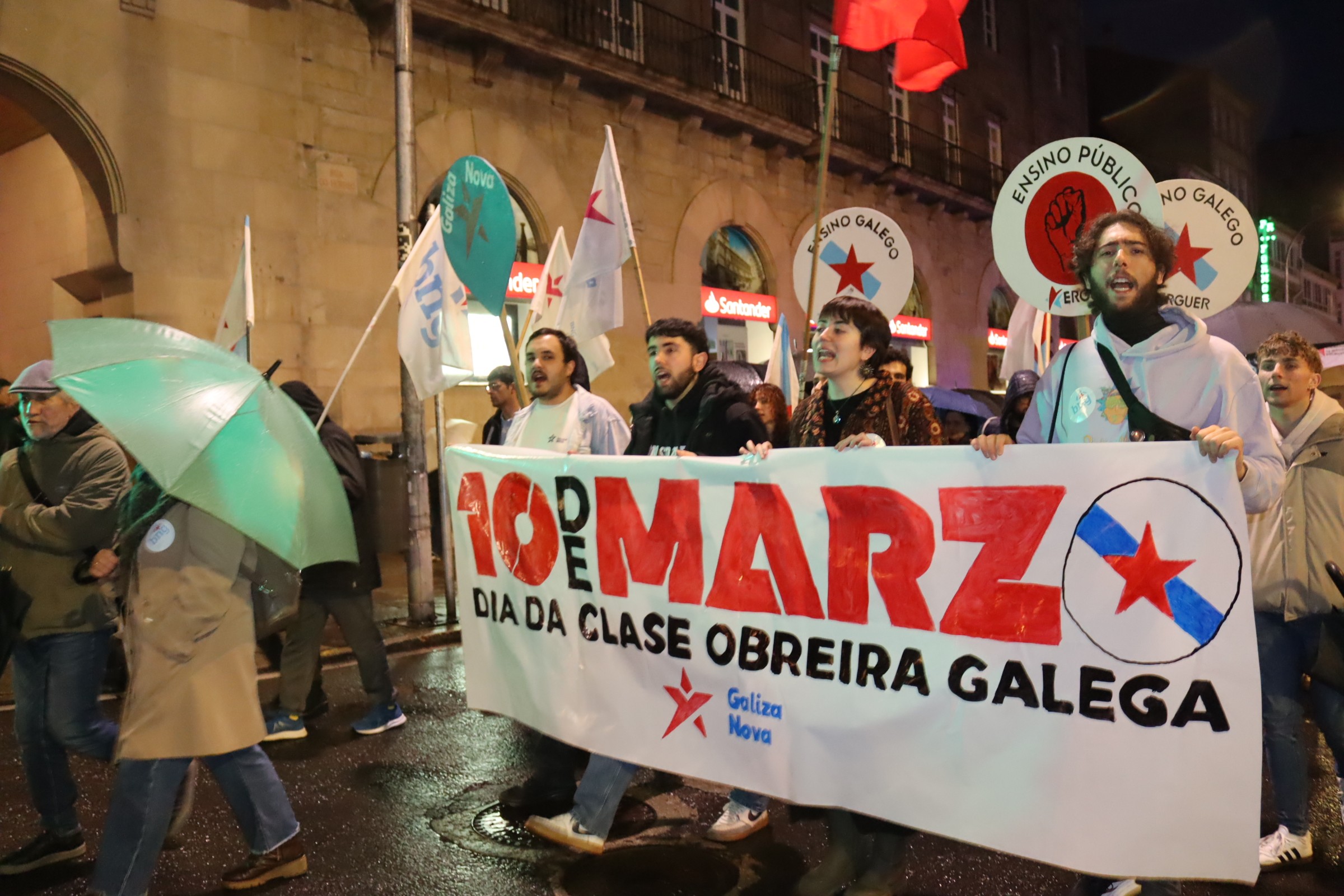 Apelou á loita e á construción de poder popular como o camiño para mudar esta realidade, forzar a un cambio das políticas dos gobernos e enfrontar os ataques da patronal. “Está demostrado que a loita e a mobilización dan resultado”, aseverou, pondo como exemplo “a capacidade da unión do pobo galego para frear Altri” e alentando que “con esa mesma capacidade tamén lograremos saír da emerxencia lingüística para avanzar no proceso de normalización da lingua galega”. Neste punto animou a participar no acto programado por Queremos Galego para o vindeiro sábado, 14 de marzo, ás 12h, na Praza da Quintana en Compostela.