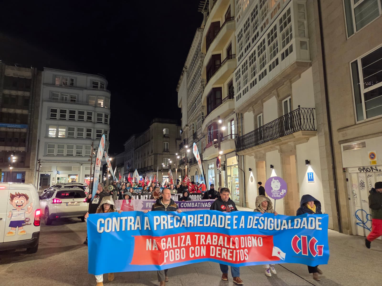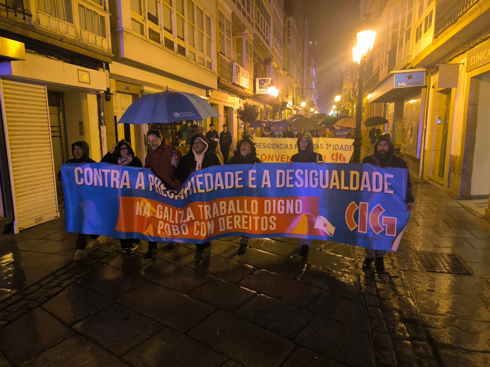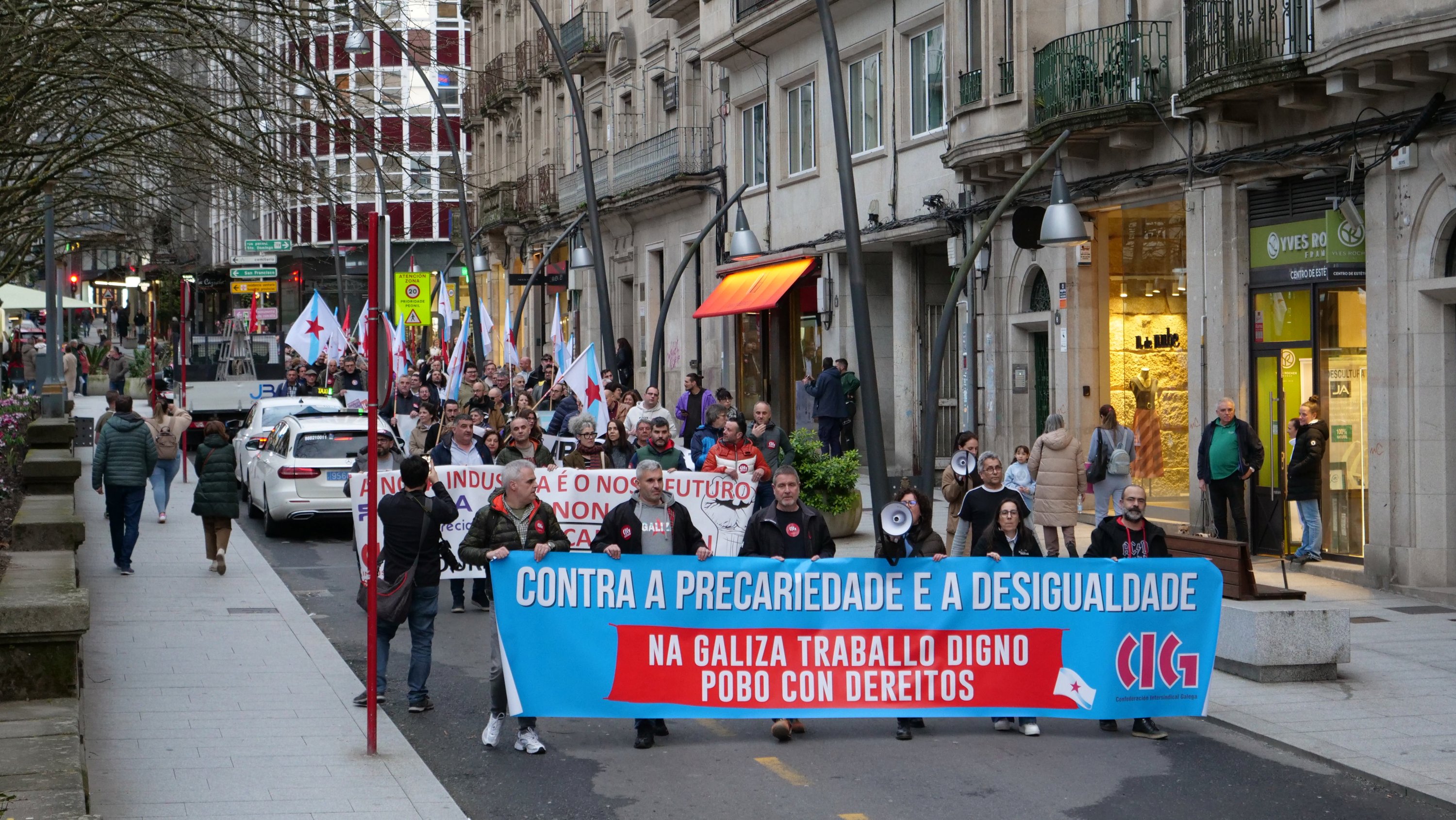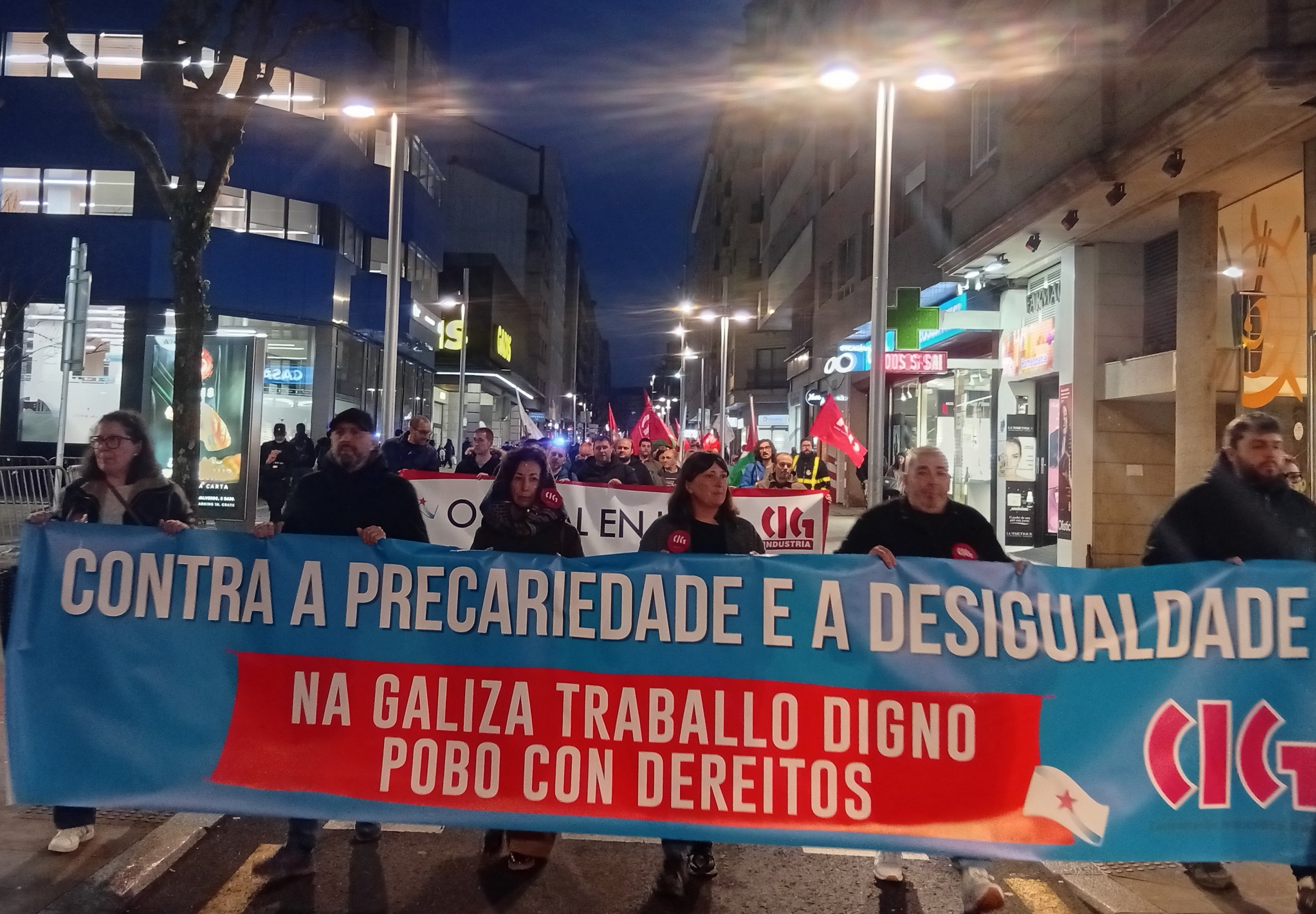 Baixo o lema “Contra a precariedade e a desigualdade, na Galiza traballo digno, pobo con dereitos”, a CIG mobilizouse este 10 de Marzo en 14 localidades para lembrar as loitas do ano 1972, durante as que foron asasinados en Ferrol pola policía franquista os traballadores da antiga Bazán, Amador Rei e Daniel Niebla. Unhas mobilizacións que foron o xerme do sindicalismo nacionalista galego que hoxe representa a CIG e por iso, no Día da Clase Obreira Galega, a central quixo facer unha xornada de reivindicación por todo o país “porque esta é á maneira de manter vivas e vixentes as loitas do ano 72 pola liberdade, por salarios e condicións laborais xustas e por defender a negociación colectiva en Galiza”.
