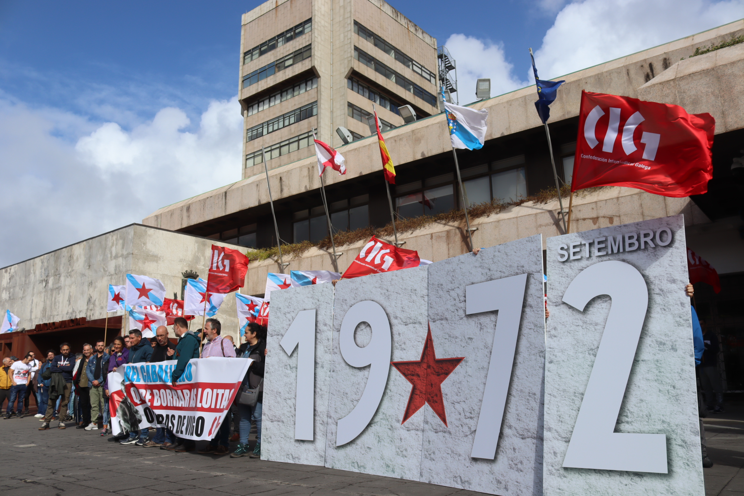 A CIG mobilizouse este mediodía diante do Concello de Vigo para denunciar a negativa do Goberno local a permitir a instalación do monumento conmemorativo das loitas protagonizadas pola clase traballadora en setembro de 1972 e os intentos do alcalde de “borrar a memoria obreira” da cidade. O secretario xeral, Paulo Carril, anunciou que as protestas continuarán até que se recoñeza a importancia dun proceso que supuxo a orixe do sindicalismo nacionalista, hoxe hexemónico no conxunto do país.
