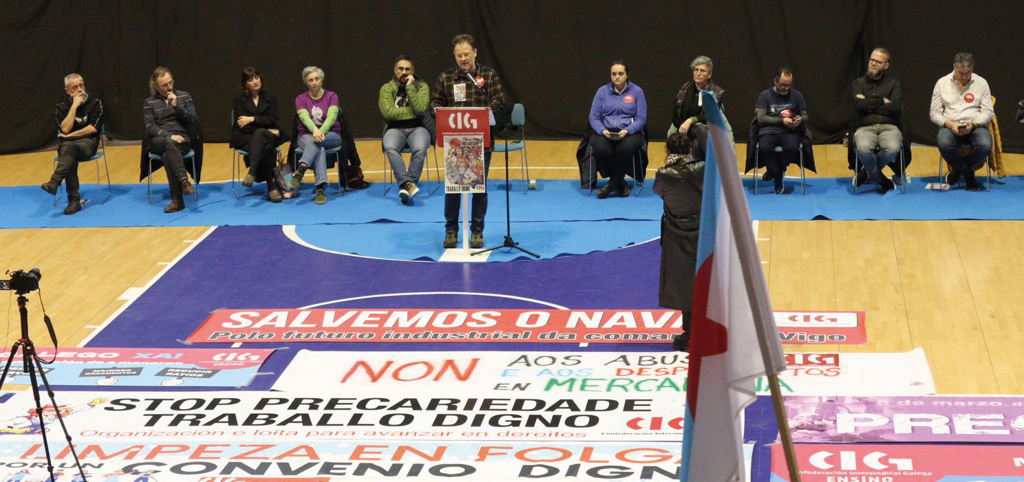 Na asemblea, ademais da secretaria das Mulleres da CIG, Nicolasa Castro, que denunciou como a xeneralización da precariedade empobreceu especialmente as mulleres mesmo agrandando a fenda salarial de xénero, e do secretario confederal de Emprego, Francisco González Sío, que chamou a “parar mediante a negociación colectiva, a mobilización e a folga o empobrecemento e a perda de dereitos”, interviñeron as secretarias e secretarios nacionais, que detallaron a situación de precariedade en cada sector e as principais loitas e mobilizacións que estamos enfrontando.