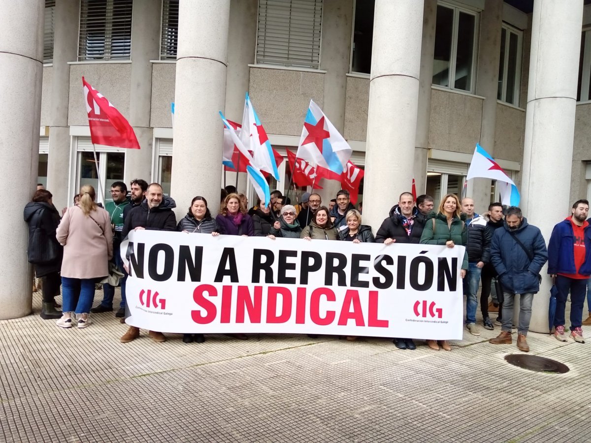A concentración de apoio ao empregado e para rexeitar un novo caso de represión sindical desenvolveuse a partir as 10:00 horas ás portas do edificio xudicial, onde se despregou unha faixa na que se podía ler “Non á represión sindical”. A protesta disolveuse unha vez se confirmou que a sesión ficaba adiada pola folga dos letrados/as, sen que se saiba aínda a data na que finalmente se vai celebrar.