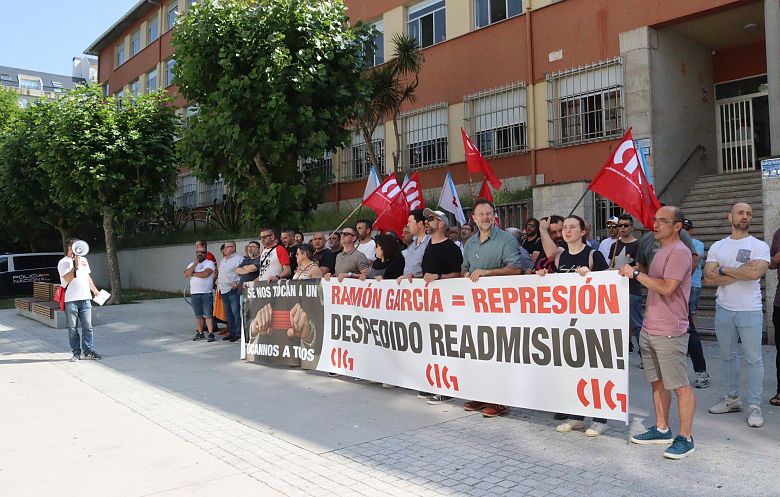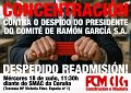 Delegadas e delegados da CIG realizaron unha concentración este mércores diante do SMAC da Coruña en apoio ao presidente do comité de Carpintería Ramón García de Ordes e para reclamar a súa readmisión inmediata. A central nacionalista denuncia que se trata dun caso evidente de represión contra o traballador polo simple feito presentarse ás eleccións pola CIG, gañalas e desenvolver a acción sindical que lle corresponde como representante legal dos traballadores e traballadoras.