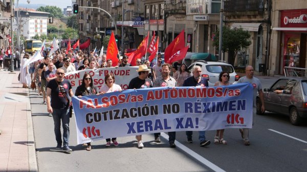 Varios centos de empregados/as de Servicarne e de delegados/as sindicais da CIG percorreron este sábado as rúas de Ourense en manifestación para denunciar a sobreexplotación á que están sometidos/as milleiros de falsos/as autónomos/as que traballan nas principais compañías cárnicas do país. A secretaria nacional da FGAMT, Dores Martínez, insistiu en que a loita iniciada hai un par de anos por este colectivo “non ten retorno” xa que “continuará até lograr as mesmas condicións laborais que o resto do persoal das empresas”, ao tempo que esixiu que as empresas os dean de alta no réxime xeral da Seguriade Social.