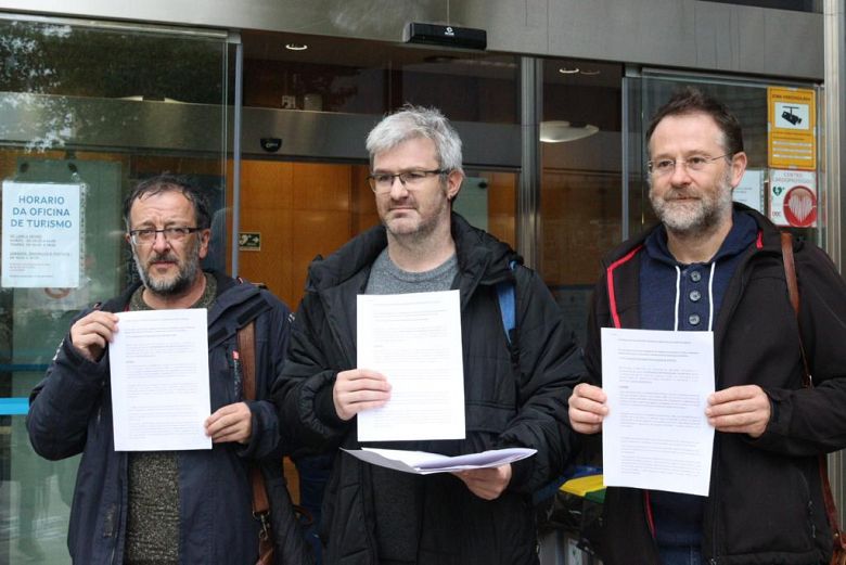 O secretario xeral, Paulo Carril, o secretario comarcal, Manuel Anxo Grandal, e o voceiro da CIG das Pontes, Alberte Amado, fixeron o anuncio este venres nunha comparecencia para os medios realizada diante do edificio administrativo da Xunta en Ferrol, onde procederon ao rexistro da convocatoria folga.