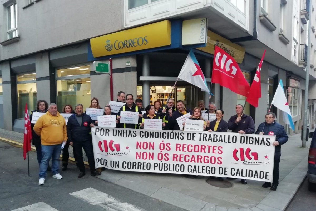 A CIG-Correos desenvolveu onte unha concentración diante das instalacións da unidade de reparto de Lalín para denunciar a falta de persoal na quenda de mañá, xa que dun total de 23 carteiros/as só hai dispoñíbeis 17, o que compromete a calidade do servizo nun momento de elevada carga de traballo como consecuencia da campaña electoral.