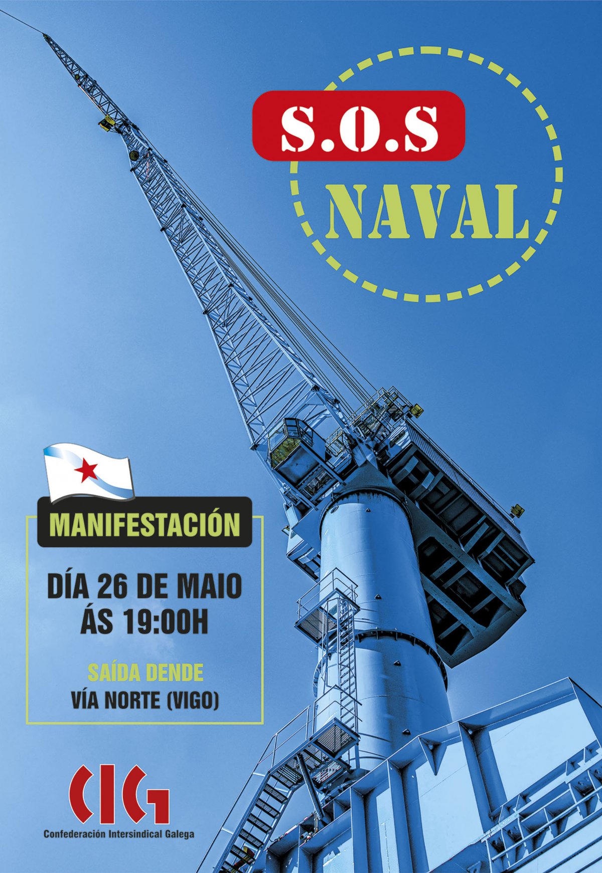 A Unión Comarcal da CIG de Vigo ten convocada unha manifestación para este xoves 26 de maio en defensa do sector naval e contra o desmantelamento industrial da bisbarra. A marcha arrincará dende Vía Norte ás 19:00 horas e rematará diante da delegación da Xunta na cidade.