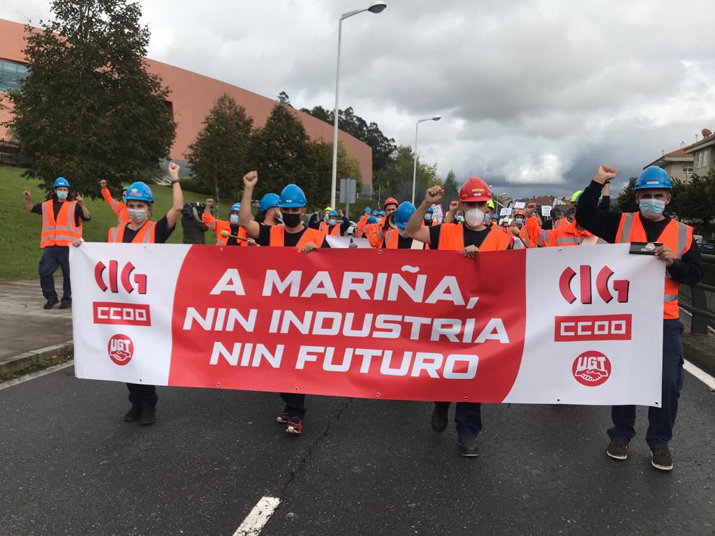 Previamente á reunión da mesa industrial (na que participa a Xunta, o goberno español, a empresa e a representación sindical), os traballadores e as traballadoras manifestáronse polas rúas de Compostela para rexeitar o ERE e esixir solucións que garantan a continuidade industrial e o mantemento de todos os empregos. A marcha saiu do centro comercial As Cancelas, pasou polo edificio administrativo de San Caetano e rematou na EGAP, onde tivo lugar a xuntanza.