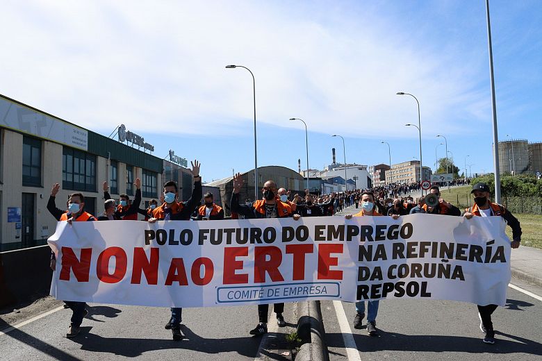 No relativo ao ERTE, cuxa mesa de negociación quedou constituída hoxe, a sección sindical da CIG reiterou que non existen motivos nin produtivos nin organizativos para aplicar agora unha regulación temporal (que terá impacto tamén no emprego da industria auxiliar), cando ademais se van pór en marcha unidades como a de FCC na parcela de Conversión 1. Neste senso, apuntan que detrás desta decisión está a negociación do Acordo Marco en Madrid no que Repsol pretende meter un recorte dos dereitos laborais, aplicar unha rebaixa salarial do 10% e eliminar conceptos como a antigüidade.