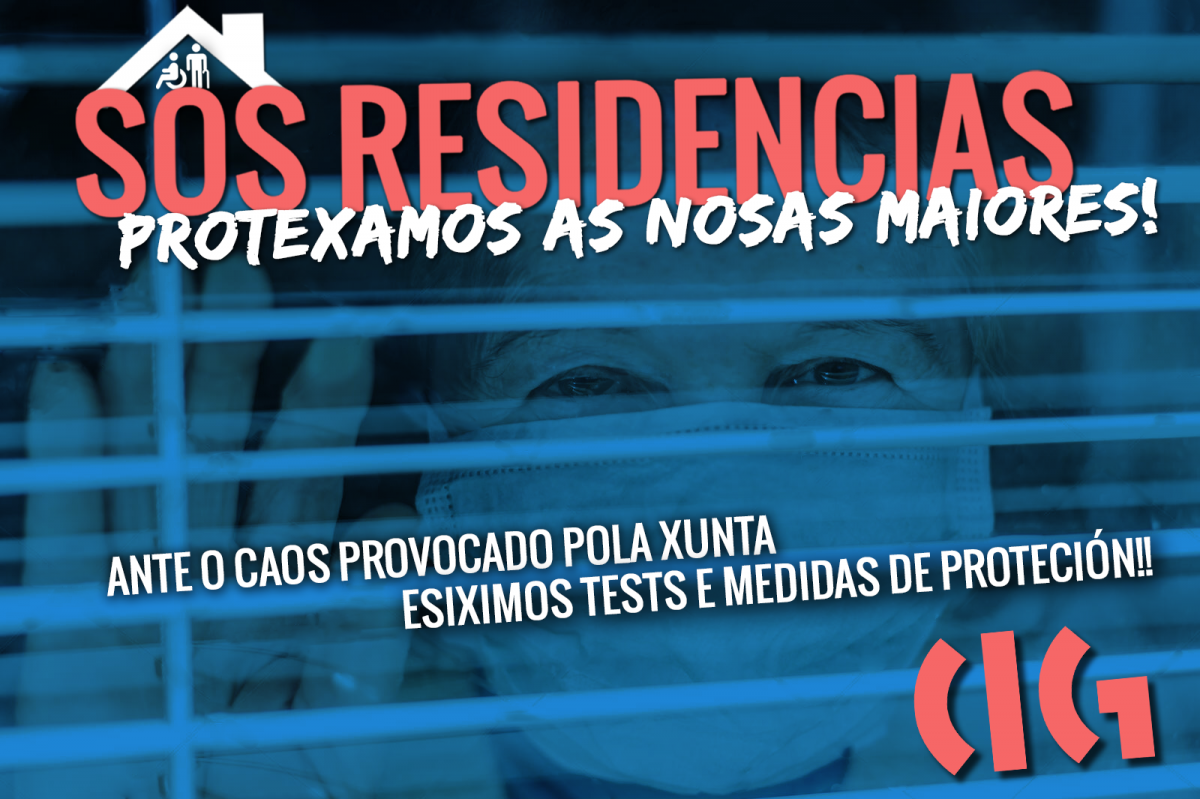 A CIG-Administración Autonómica vén de denunciar á consellaría de Política Social perante o Xefe Territorial da Inspección de Traballo pola súa xestión nas residencias de maiores, centros de menores (residenciais) e centros de atención a persoas con discapacidades. A responsábel nacional, Zeltia Burgos, explica que “ante o caos organizativo e a deixadez na toma de medidas de prevencion perante o covid 19 solicitamos medidas cautelares urxentes da autoridade laboral como que inste a que se faga o test a todo o persoal urxentemente”. Lembra que “levamos moitos días denunciando a situación nos centros sociais da Xunta e tememos pola saude das residentes e traballadoras porque aquí non se fai cargo ninguén e a situación xa é desesperante”.