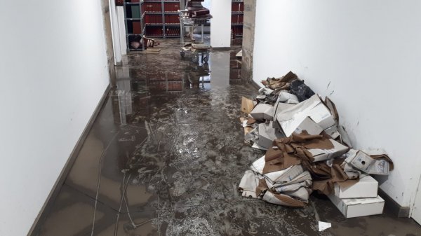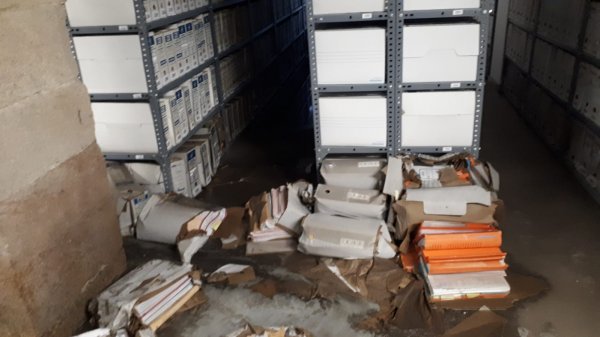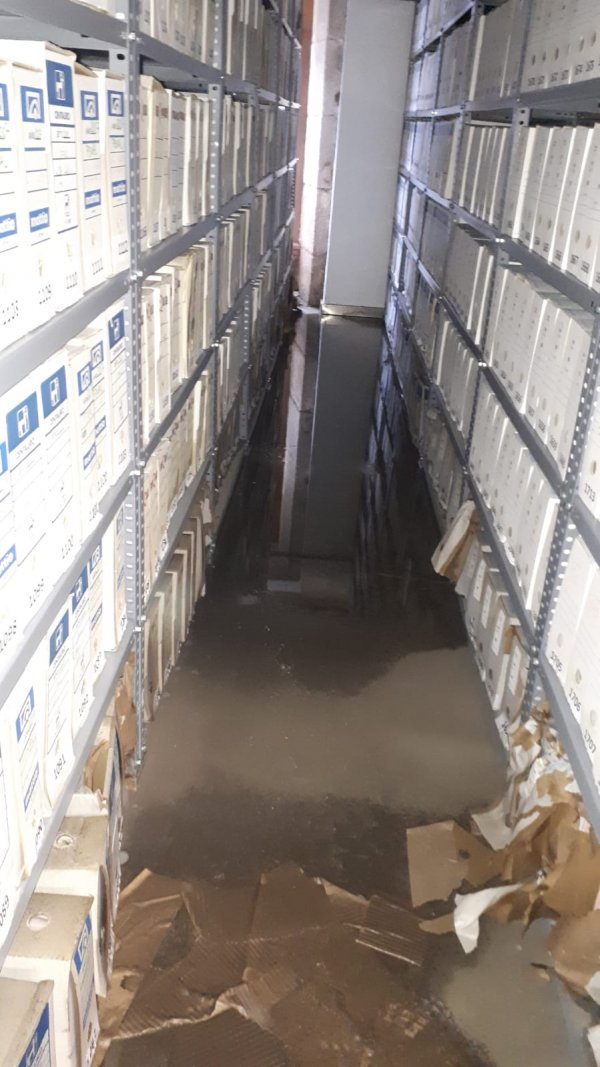 Que as dependencias do arquivo están asolagadas é coñecido pola Consellaría de Xustiza cando menos dende onte, xa que o domingo a empresa encargada do mantemento do edificio estivo realizando labores de limpeza, polo que a zona da maquinaria está seca e limpa. Porén, as estancias nas que se gardan os expedientes xudiciais (tanto dos procedementos xa rematados como dos que están abertos) permanecen empapadas e só hai dúas traballadoras recollendo arquivos na zona afectada.