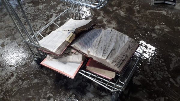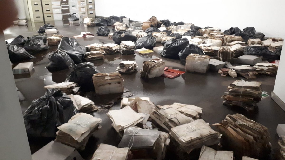 O persoal de xustiza que se encarga do arquivo xudicial da Audiencia Provincial da Coruña atopouse esta mañá con moreas de expedientes enchoupados e esparexidos por todo o soto da Fábrica de Tabacos, a causa da inundación que sufriu o edificio polas choivas desta fin de semana. A pesar deste desastre, nestes momentos só hai dúas persoas (unha técnica e unha auxiliar) tentando organizar, limpar e salvar os expedientes como boamente poden, posto que ningunha persoa con responsabilidade na Dirección Xeral de Xustiza se achegou até o edificio para avaliar o alcance dos danos.