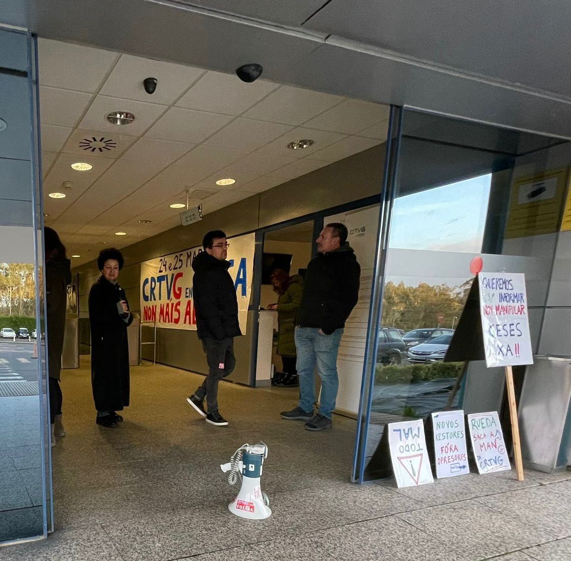 Por outra banda, a CIG celebra o importante pronunciamento recabado polo Comité Intercentros de Dominique Pradalié, presidenta da Federación Internacional de Periodistas, representante de 600.000 profesionais de todo o mundo, apoiando @s traballadores en folga da CRTVG e as reivindicacións duns medios de comunicación públicos en Galiza de verdade libres, plurais e de calidade; contra o desmantelamento, represalias e manipulación que están padecendo @s profesionais da televisión e radio públicas de Galiza e, polo tanto, todo o pobo ao que a CRTVG se debe.
