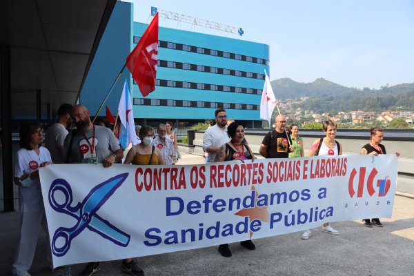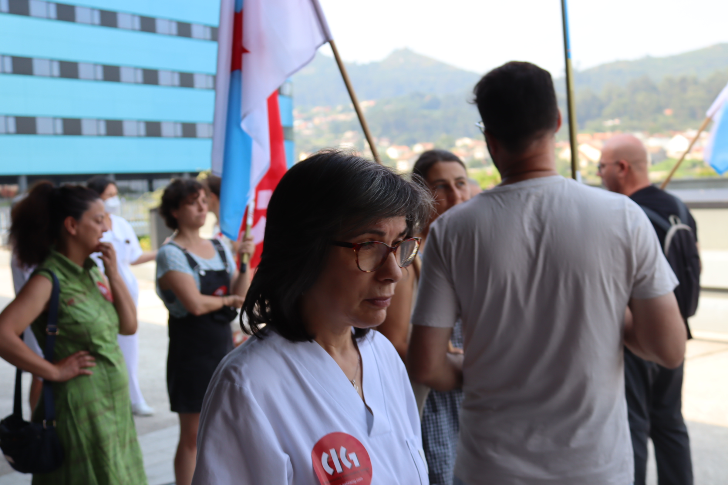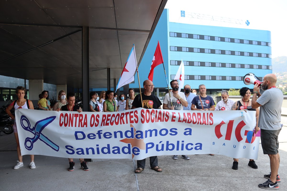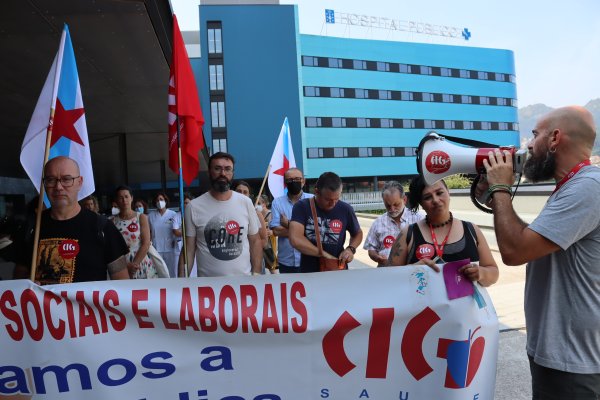 A CIG-Saúde de Vigo desenvolveu hoxe unha concentración na porta principal do hospital Álvaro Cunqueiro para reclamar solucións urxentes á sobrecarga que padecen as traballadoras/es da área sanitaria como consecuencia da falta de persoal, o que está a provocar unha atención sanitaria “de guerra”.