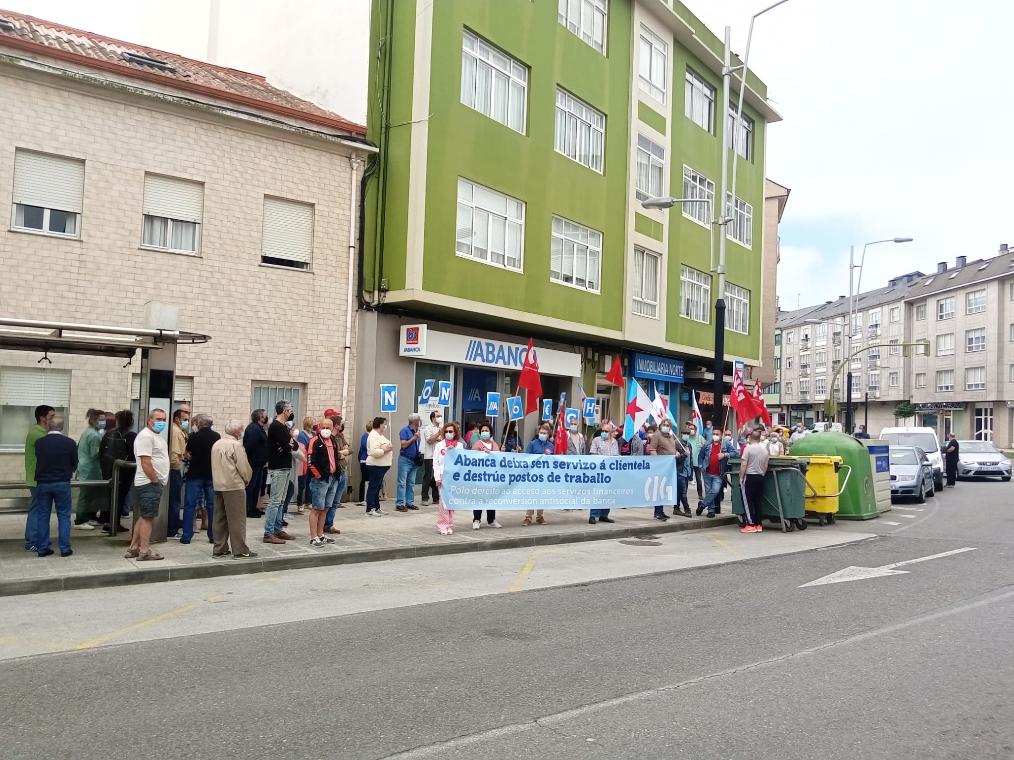 A sección sindical da CIG en Abanca continuou hoxe en Catabois (Ferrol) e no Barrio das Flores (A Coruña) a campaña de mobilizacións para rexeitar o peche de oficinas e a restrición de servizos á clientela por parte da entidade financeira. A protesta contou coa participación de ducias de veciños e veciñas destes barrios que ven como se lles incrementan as comisións ao tempo que son expulsados das súas oficinas e se lle restrinxe o acceso aos servizos financeiros.