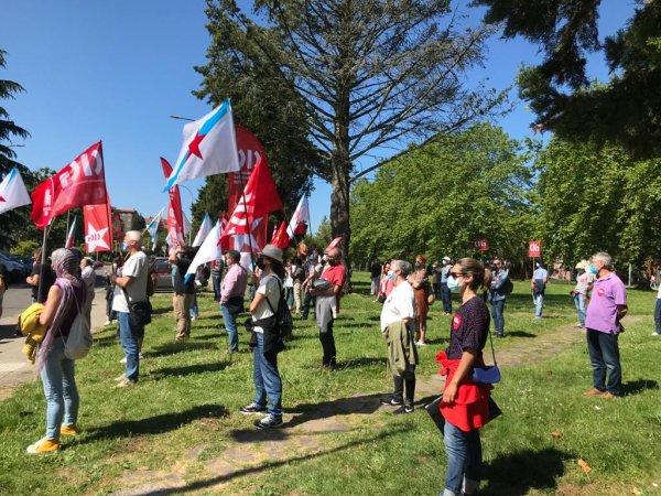 Delegadas e delegados da CIG-Ensino concentráronse esta mañá diante da consellaría de Educación, no edificio administrativo da Xunta de Galiza, en San Caetano, para demandar o mantemento das ratios docentes deste curso escolar. Educación pretende reducir as distancias entre o alumnado en ESO e Bacharelato, pasando dos actuais 1,50 metros deste curso a 1,20 metros para o que vén, noutros casos directamente a 1 metro ou mesmo como calquera outro curso normal. Isto provocaría unha redución drástica de profesorado, o incremento das ratios e volver á “pandemia dos recortes”.
