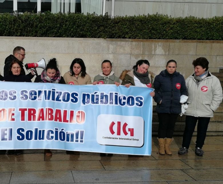 A totalidade do cadro de persoal de Serinter, concesionaria do Servizo de Axuda no Fogar (SAF) do Concello de Forcarei, participou na mobilización convocada este mércores pola CIG diante do consistorio para reclamar unha solución inmediata á problemática que ameaza a continuidade do servizo e dos empregos.
