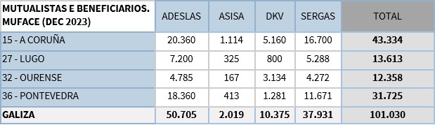 MUFACE debe garantir a prestación sanitaria e asistencial a mutualistas e beneficiarios coas mesmas condicións que aparecen no concerto en vigor, algo que xa a día de hoxe non se fai, xa que nestes anos os e as mutualistas sofren un claro incumprimento, con baixa calidade na atención sanitaria que reciben e trabas burocráticas para acceder a servizos que teñen recoñecidos. Lamentabelmente constatamos que, en ocasións, MUFACE está aliñada coas empresas e mesmo obriga a mutualistas a acudir ao xulgado para que se lles atenda como en dereito lles corresponde.