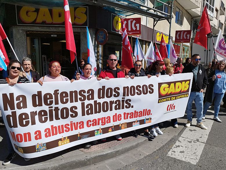 A CIG concentrouse este venres diante do supermercado Gadis da Avda. Ramón Ferreiro para denunciar a sobrecarga de traballo que ten que soportar o persoal e exixir que se respecten os dereitos laborais, nomeadamente a regularización das categorías laborais, xa que un elevado número de traballadoras e traballadores na provincia está cobrando menos do que lle correspondería polas tarefas que desempeña.