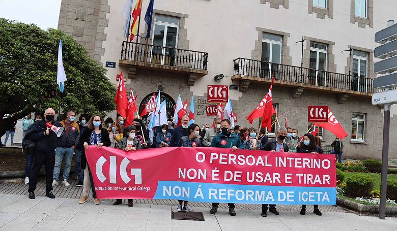 Delegados e delegadas das Área Pública da CIG (Ensino, Administración e Saúde) concentráronse este luns diante da Delegación do Goberno na Coruña en rexeitamento á proposta de modificación do Estatuto Básico do Empregado/a Público do Ministerio de Función Pública e a un “pacto de estabilización” que “deixa tirados/as” a miles de interinos/as e temporais.