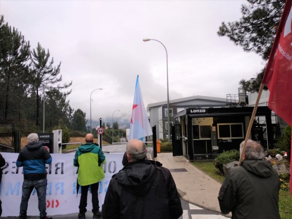 Representantes sindicais da CIG mobilizáronse hoxe nos exteriores da empresa Lonza no Porriño en resposta a un caso de represión sindical, xa que a compañía farmacéutica leva tempo impedindo o acceso ás súas instalacións do delegado de persoal, que pertence a unha contrata de mantemento.