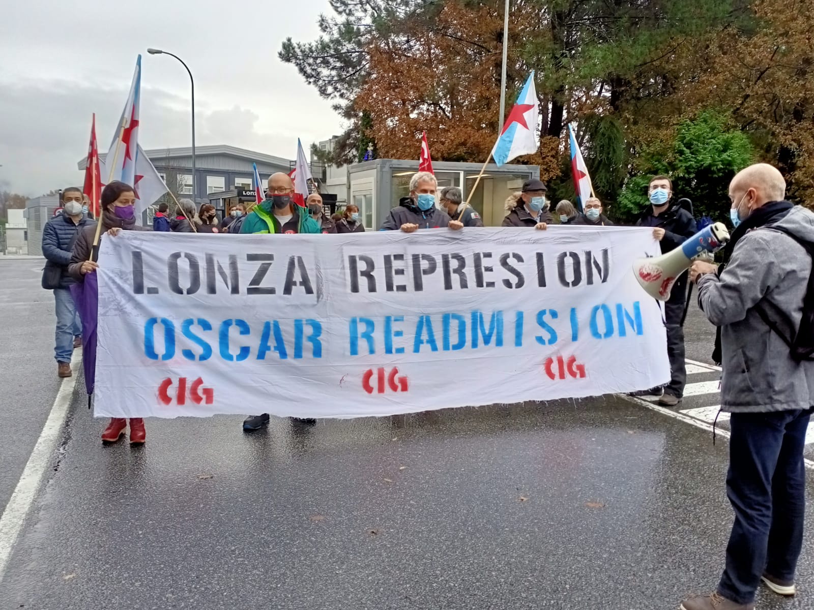 Coa protesta de hoxe a central sindical quere amosar o seu rexeitamento á actitude da empresa e reclamar que se lle permita regresar ao seu posto. O afectado é traballador da empresa ISS, contrata do servizo de mantemento de Lonza, e leva prestando servizo para a farmacéutica dende hai 15 anos.