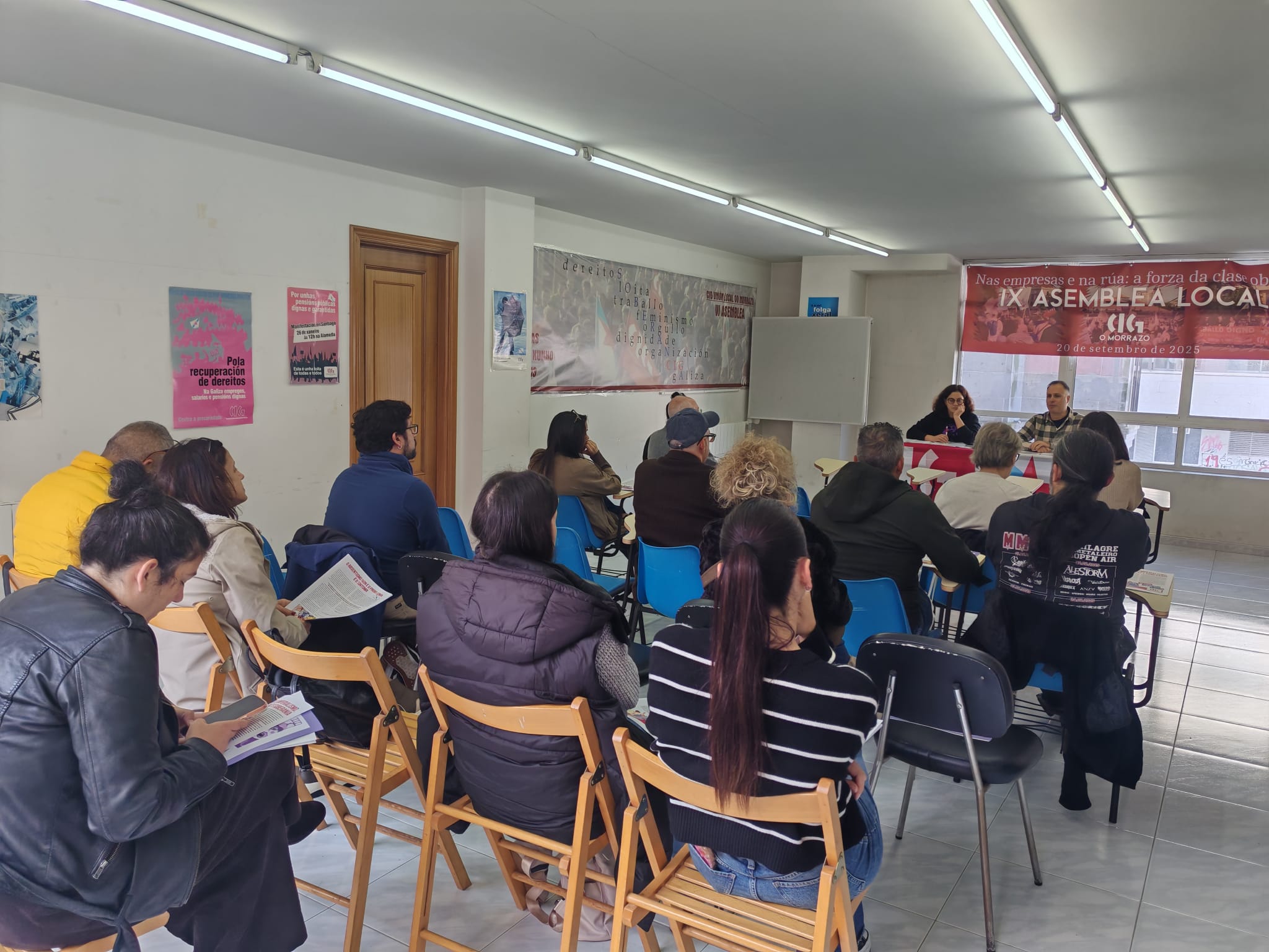 A CIG encetou hoxe a campaña de información e mobilizacións coa que baixo o lema ‘O absentismo non é un problema, é un síntoma’ pretende desmontar as mentiras coas que a patronal e a Xunta insisten en responsabilizar a clase traballadora das baixas laborais, criminalizando as ausencias e buscando culpabilizar as persoas por enfermar. O secretario xeral da central nacionalista, Paulo Carril, que participou na asemblea de persoas delegadas sindicais e na manifestación de Pontevedra, quixo deixar moi claro que “a saúde é un dereito e enfermar non é un delito” e acusou os Gobernos español e galego de actuar ao mandato do empresariado permitindo que as mutuas asuman máis competencias no tratamento de doenzas músculo esqueléticas e de saúde mental.