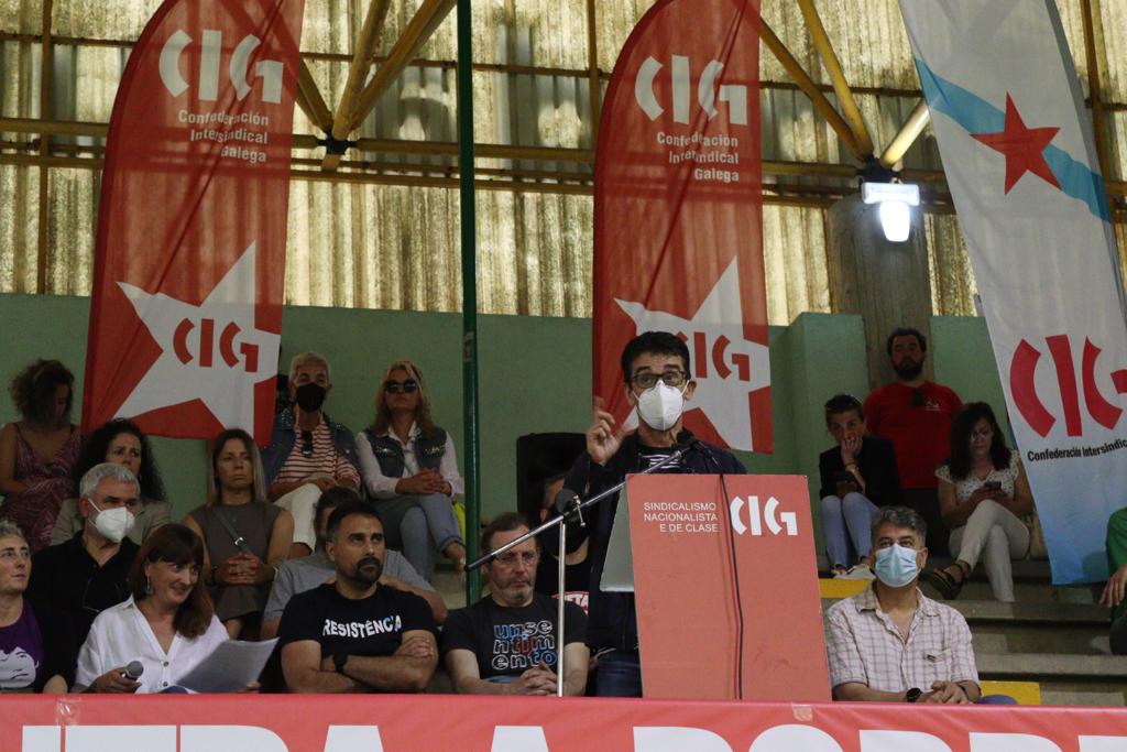 Incidiu en que o único camiño “é a loita e a mobilización, porque os dereitos non os regalan, non veñen do diálogo social, nin os concede un goberno porque si”. Lembrou que tampouco están dispostos a recoñecelos nin o poder económico, nin a patronal, que “teñen asegurados os seus intereses grazas ás políticas económicas e sociais que lles fan os Gobernos”. E denunciou que “dispoñen tamén dunha Lei Mordaza e dunha impunidade policial e xudicial para a práctica do matonismo e gangsterismo”, como ocorreu estes días na folga do convenio do metal da Coruña, ou na represión e acoso sindical de militantes da CIG en Barreras, Revi, Aplinor, Depisa, Dinahosting, Ingemar, Atunlo O Grove, Grupo Inditex, Fundación Hermanos Prieto, Prosegur, Smart Green”.