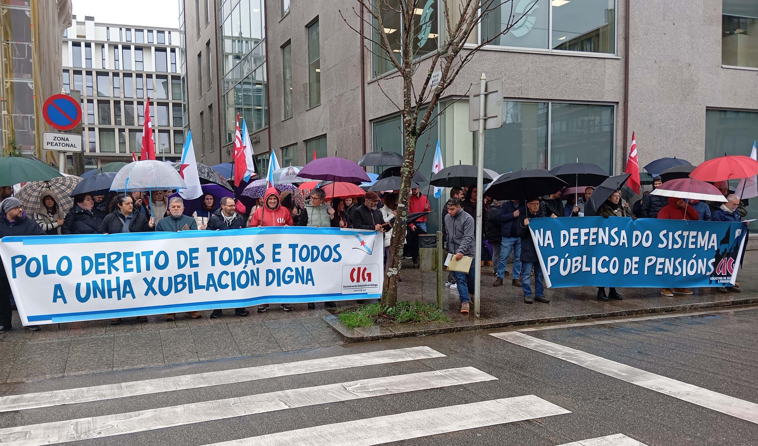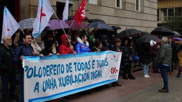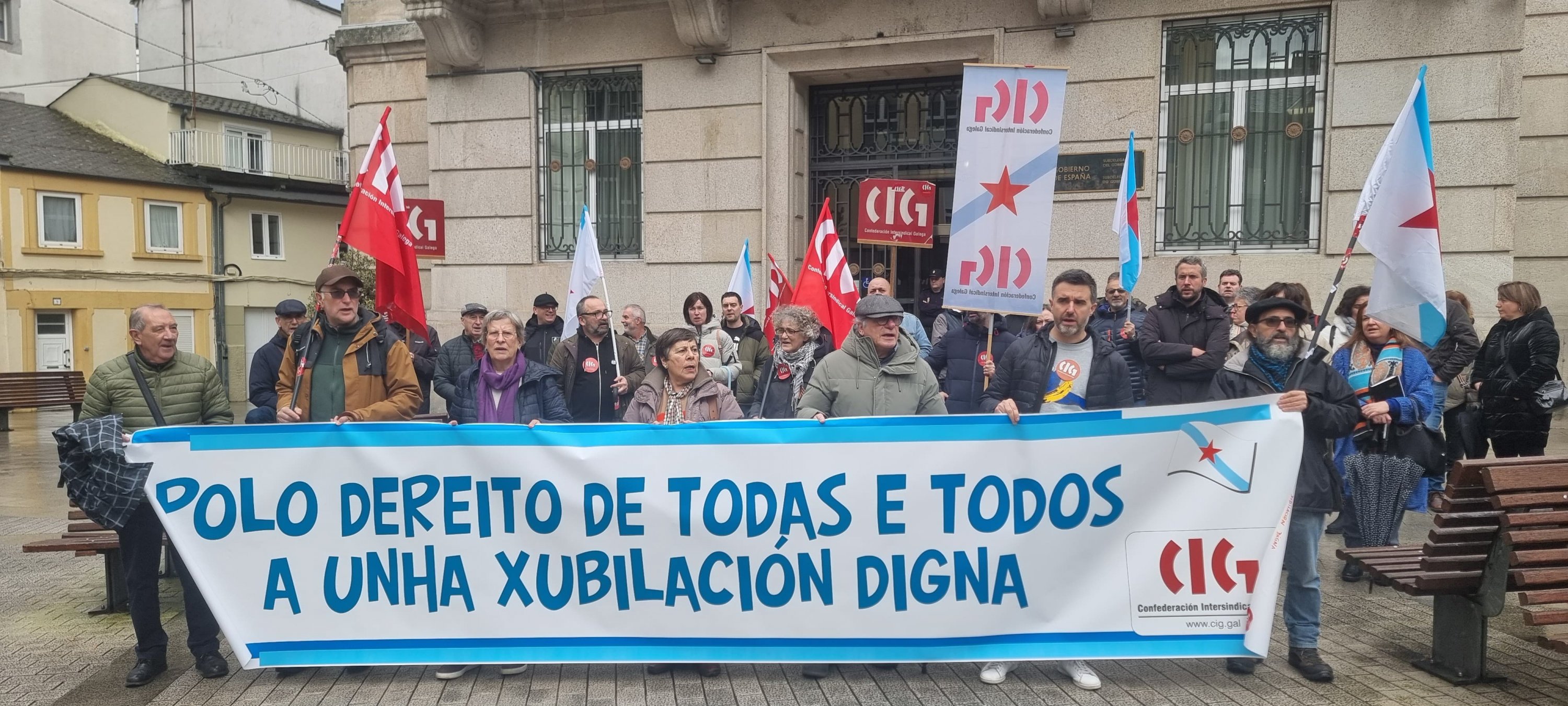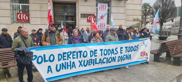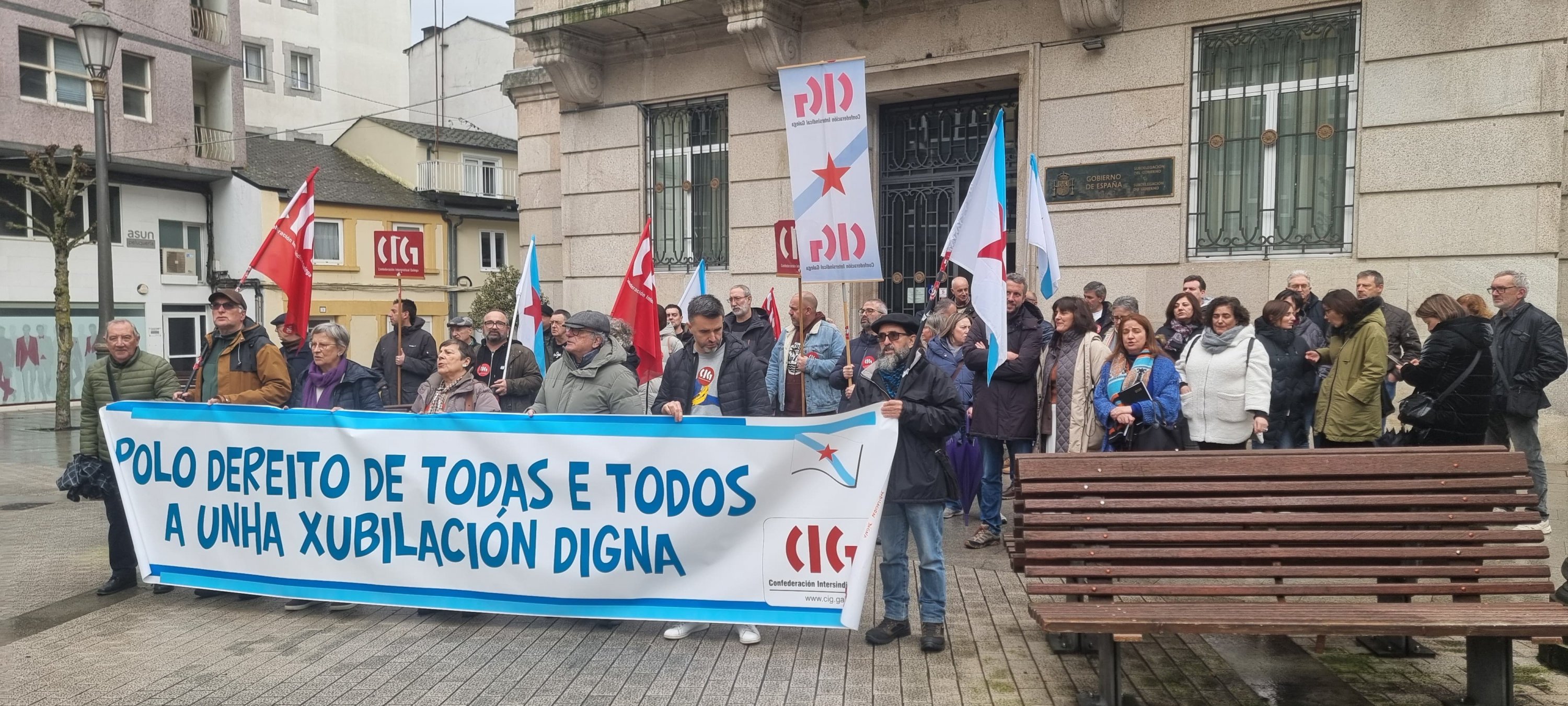 Delegadas e delegados da CIG concentráronse esta mañá diante da Delegación do Goberno, na Coruña; das subdelegacións do Goberno en Lugo, Ourense e Pontevedra, e nas oficinas do INSS, en Compostela, Ferrol e Vigo, para denunciar o novo recorte na xubilación parcial, que suporá outro retroceso de dereitos máis para a clase traballadora. A mobilización coincidiu coa convalidación, no Congreso das e dos Deputados do Decreto de xubilación parcial.