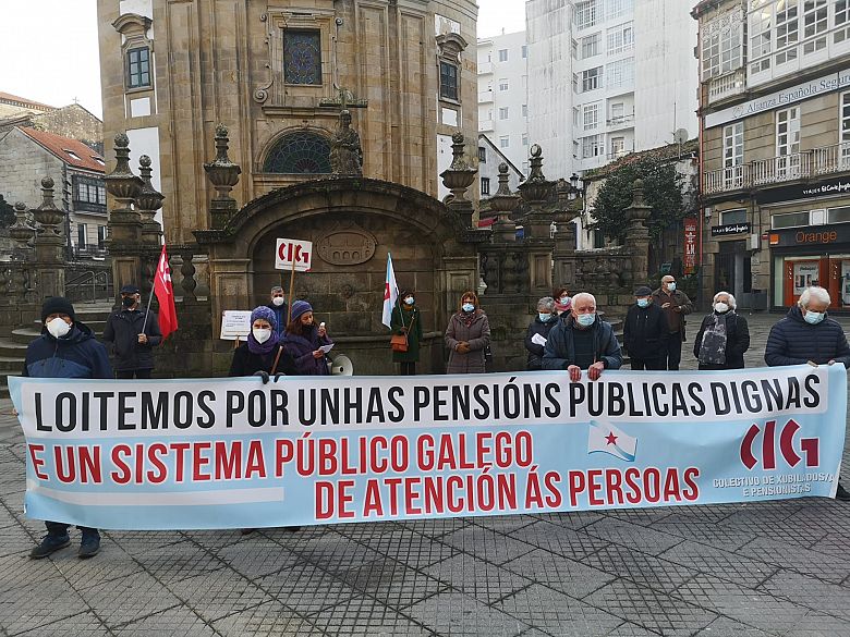 A CIG desenvolveu hoxe concentracións nas sete cidades galegas en demanda dunhas pensións públicas dignas e garantidas e dun Sistema Público Galego de Atención ás Persoas. Durante as mobilizacións, convocadas polo Colectivo de Persoas Xubiladas e Pensionistas da central sindical, instouse aos Gobernos español e galego a poñer os coidados no centro das políticas públicas.