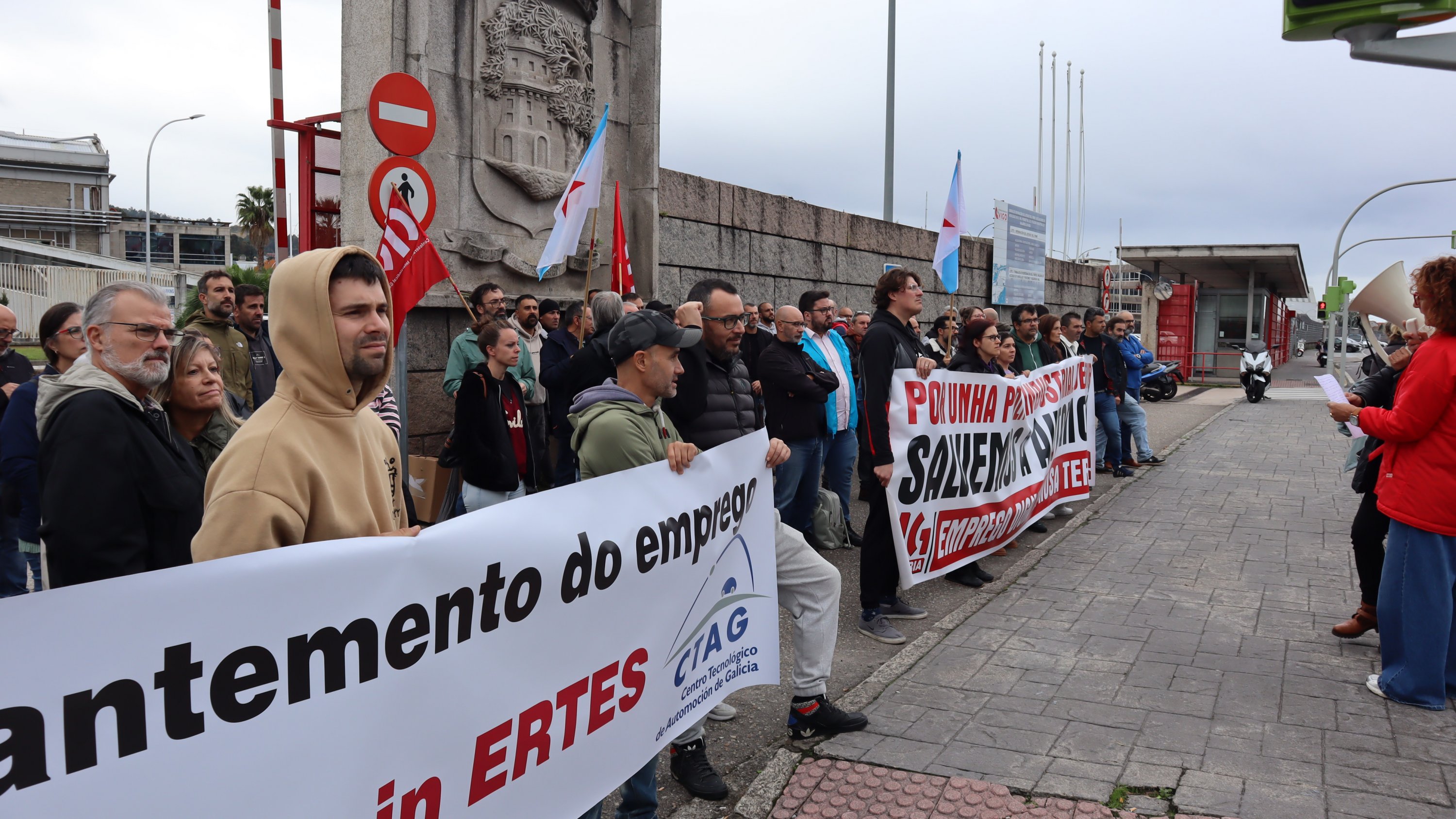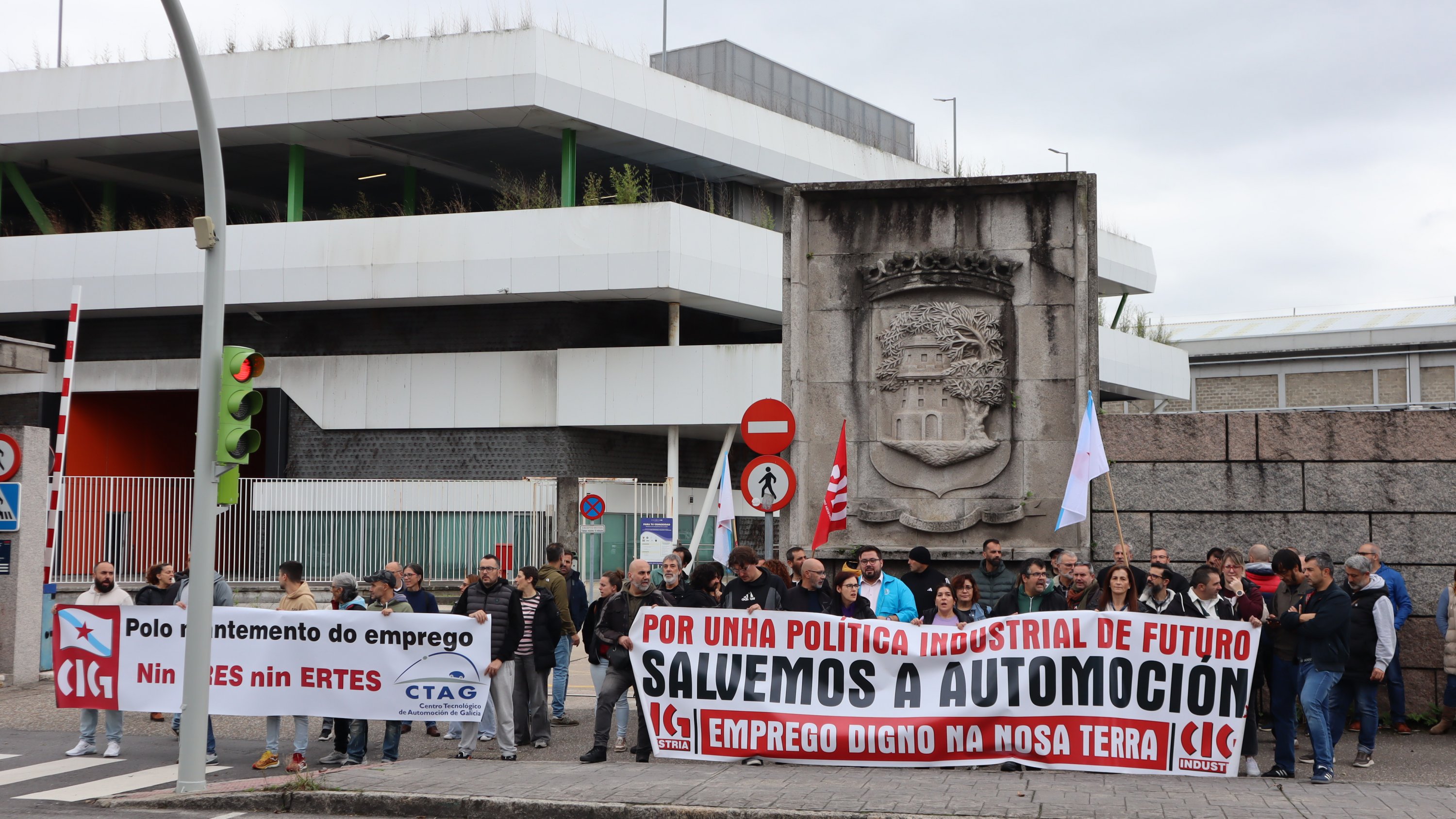 Persoas traballadoras e delegadas da CIG no sector da automoción mobilizáronse hoxe diante da sede do Custer de Automoción e Mobilidade de Galiza (CEAGA) para demandar actuacións urxentes ante o avance da crise na industria do automóbil galega, que está a provocar despedimentos constantes e paradas na produción.